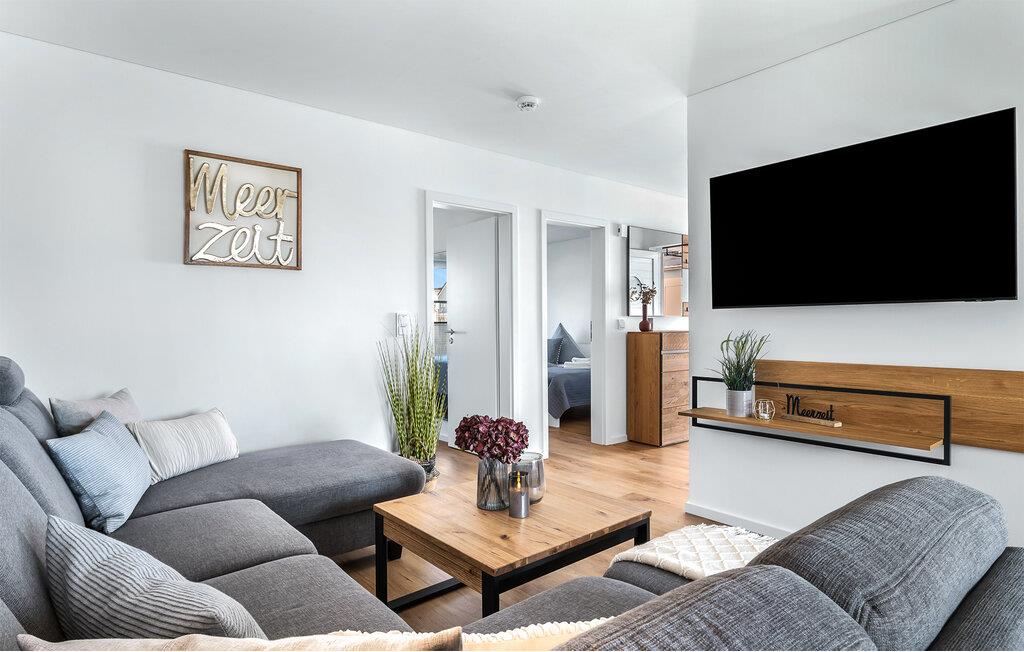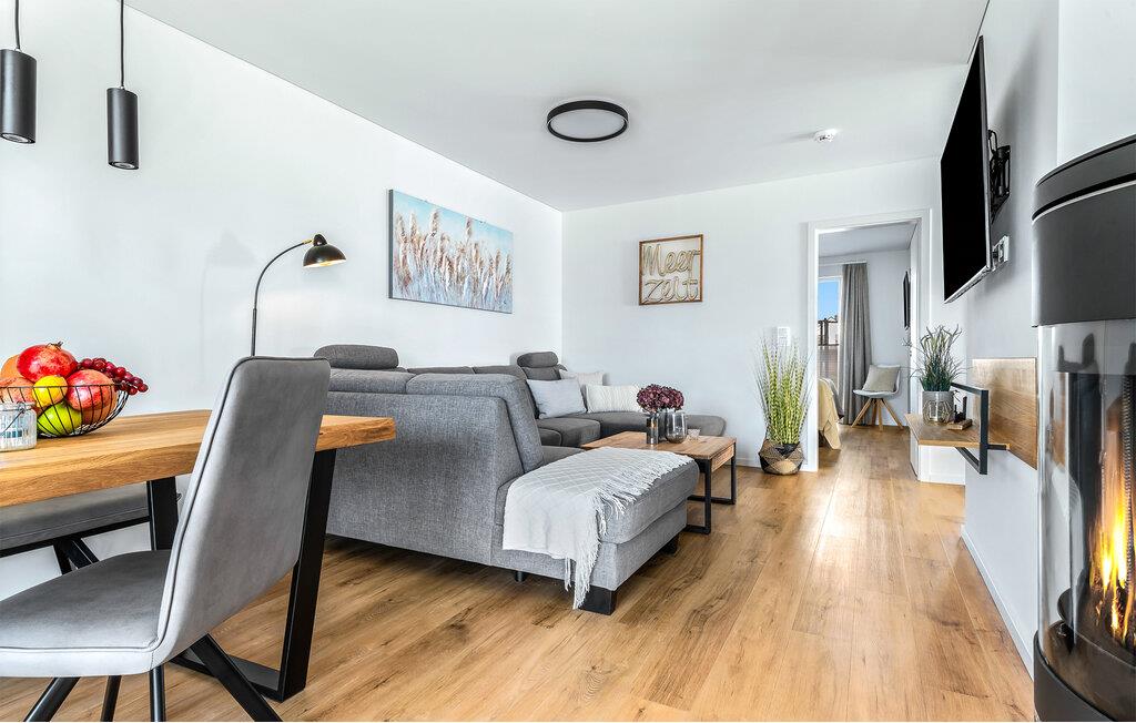Velkommen til strandlivet! Lad hverdagen bag jer og nyd jeres velfortjente ferie i denne skønne ferielejlighed i umiddelbar nærhed af Weidefelder-stranden og havnepromenaden i Olpenitz. Træd ind i den rummelige og åbne stue/alrum, som straks inviterer til afslapning med sin hyggelige stemning. I kan slappe af i den komfortable sofa foran smart-tv'et. Siddeområdet kan nemt laves om til en stor sovesofa.