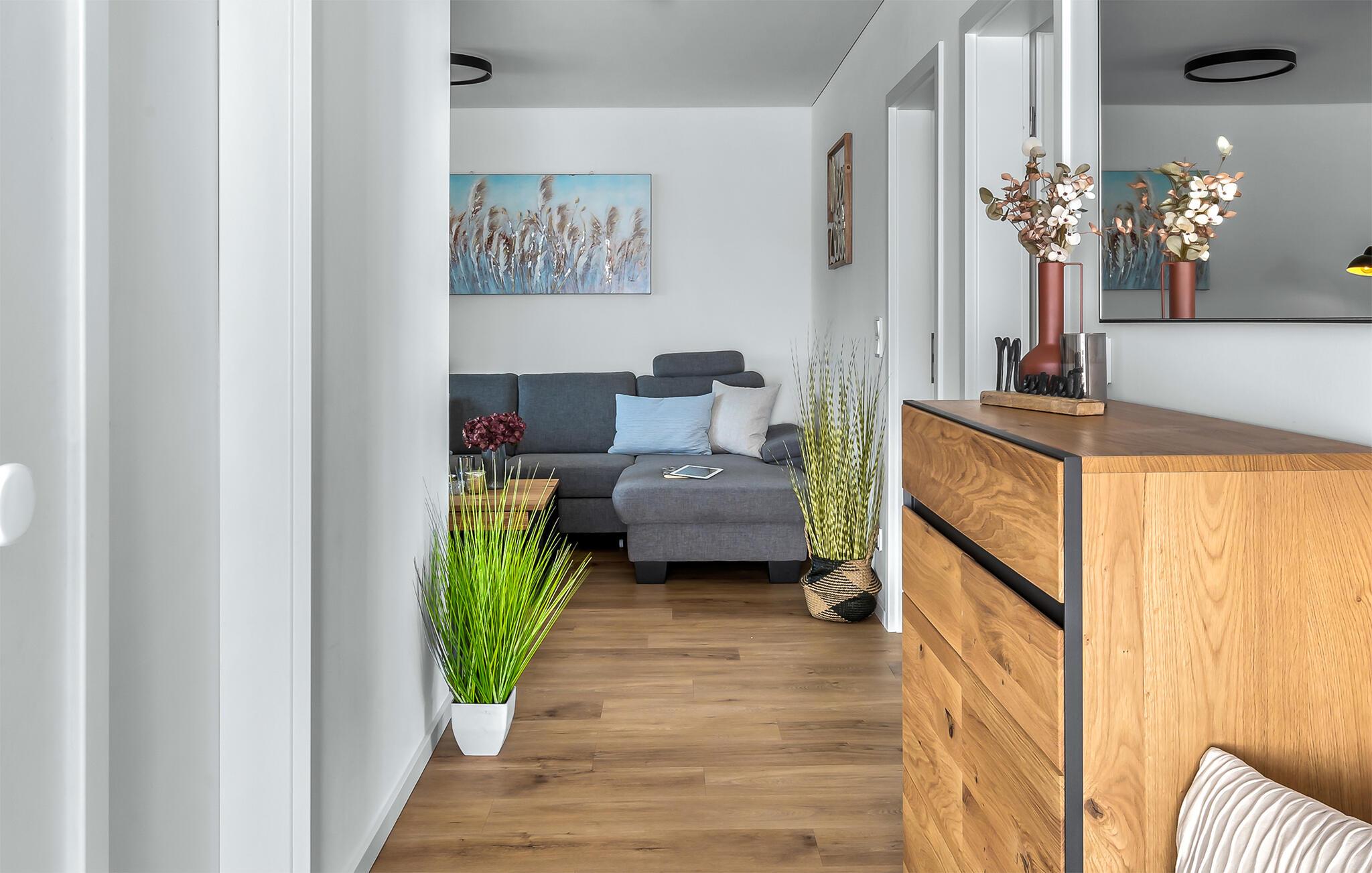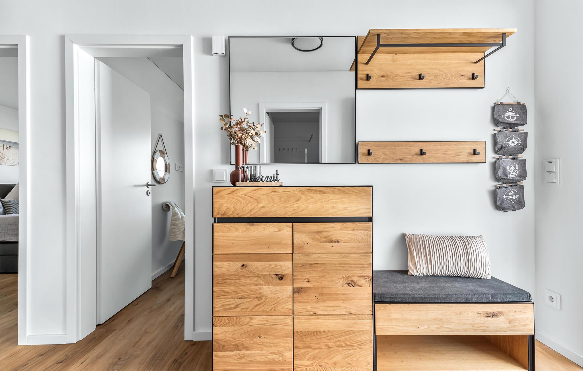 Et højdepunkt ved STRANDLEBEN er jeres gulvvarme, som garanterer jer et behageligt opholdsmiljø selv på kolde dage. Strandlivsindretningen er moderne og stilfuld kombineret med rustikke møbler i ægte træ. Her kan I nyde jeres ferie i en harmonisk og afslappet atmosfære og føle jer helt hjemme. Børn og hunde er velkomne i STRANDLEBEN. Da ferielejligheden ligger i stueetagen, er ferielejligheden stort set barrierefri. Vi glæder os til snart at byde jer velkommen til strandlivet!