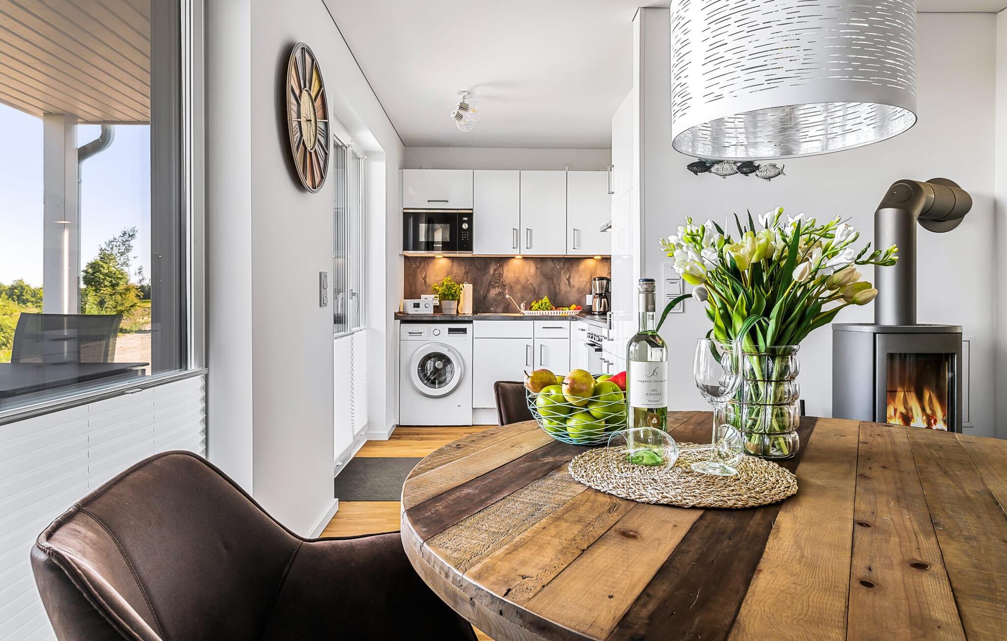 På ferien er der tid til kreativ madlavning, det fuldt udstyrede køkken-alrum lader intet tilbage at ønske.