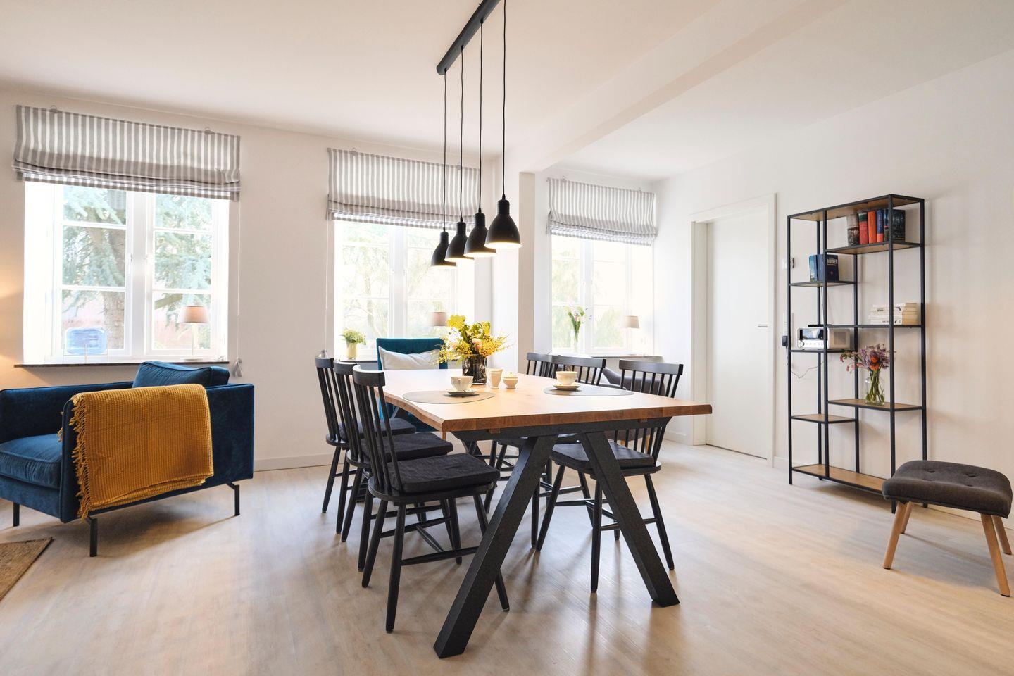 Ankommen und genießen ... Die sehr geschmackvoll und liebevoll gestaltete Ferienwohnung eines ehemaligen Bauernhauses lädt zum Verweilen und Entspannen ein. Ob mit der ganzen Familien oder ein Trip mit Freunden - der große Wohn- und Essbereich ist das Herzstück der Wohnung. Hier kann gemeinsam gekocht, gegessen, gespielt und gelacht werden. Für eine zusätzlich gemütliche Atmosphäre sorgt ein Kaminofen in der Sofaecke.