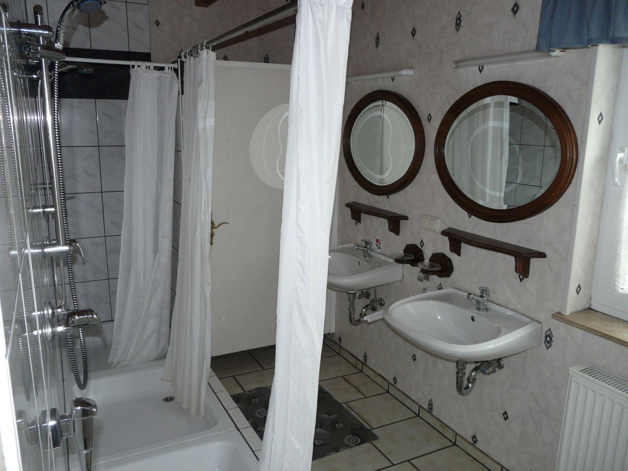 The large guesthouse offers around 150m² of space for up to 16 people. The big living room has dining corners, seating and satellite TV, for dining and sitting together sociably. The fully-equipped kitchen is equipped with all the necessary kitchen utensils for self-catering, as well as two fridges, a stove, dishwasher, filter coffee machine, toaster, kettle etc. There are also two bathrooms. The first has three showers, two WCs, a urinal and two washbasins, the second has a shower, a WC, a urinal and a washbasin. Upstairs there are four bedrooms and an additional WC. You can also use a room for storage. There are further beds in the attic that are favoured by children.