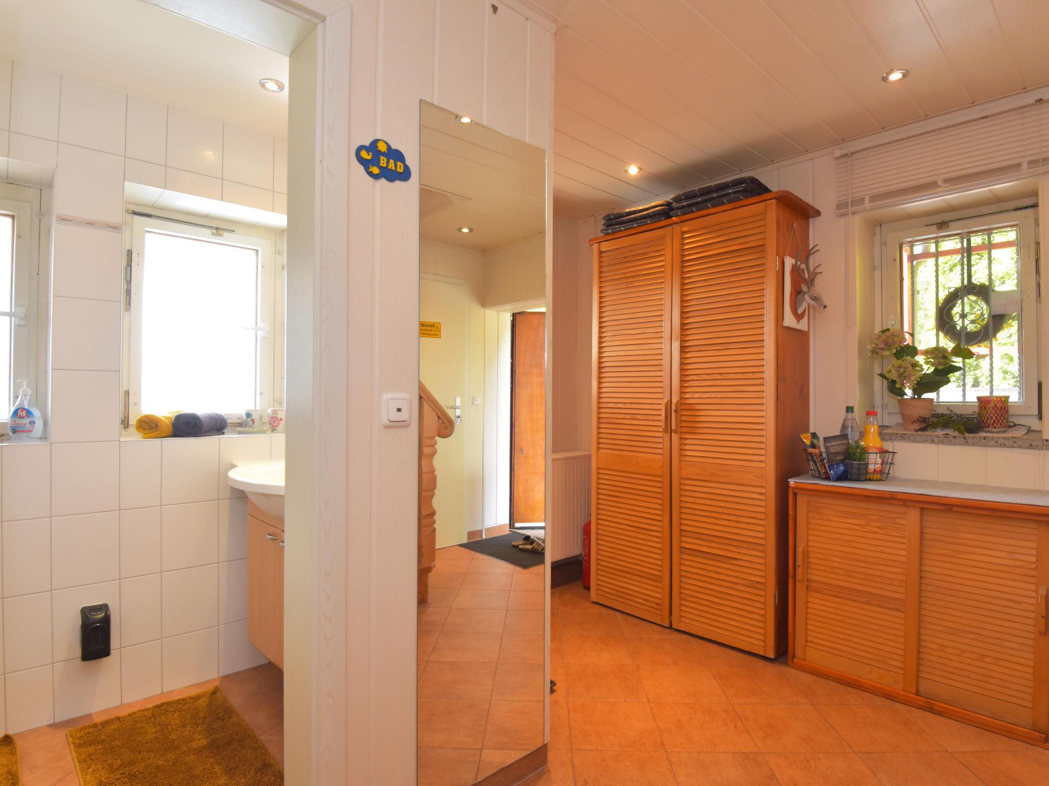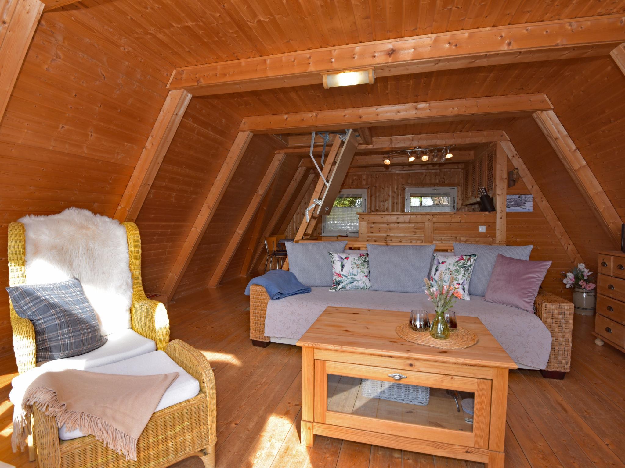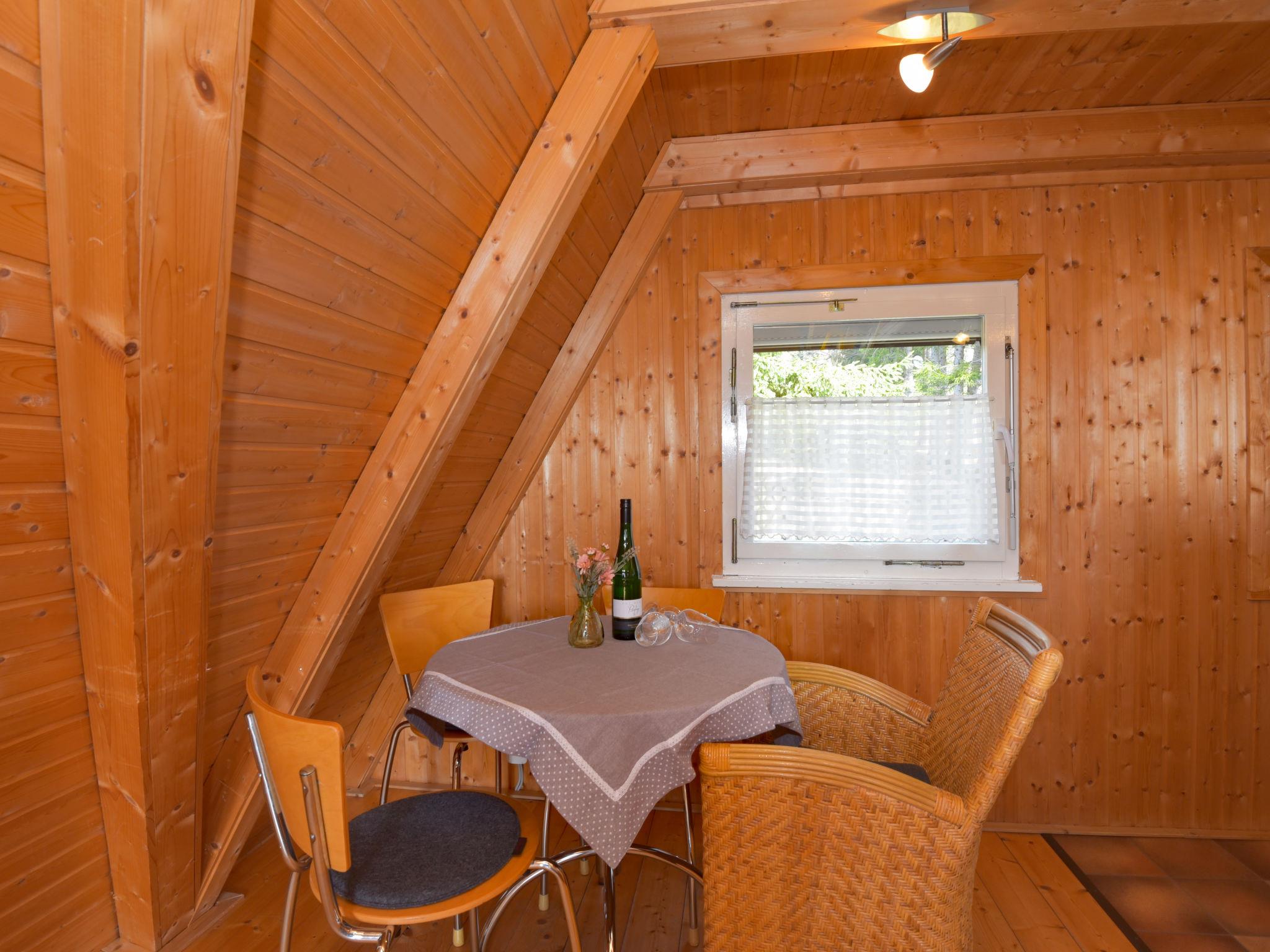 2-room house 60 m2 on 3 levels. Cosy and wooden furniture furnishings: on the lower ground floor: shower/WC, Sauna. Upper floor: living/dining room with satellite TV (flat screen), CD-player and DVD. Exit to the balcony. Kitchenette (oven, 4 ceramic glass hob hotplates, toaster, kettle, microwave, freezer, electric coffee machine) with dining table. Top floor: (ladder) open, 1 room with sloping ceilings with 2 beds and 1 double bed. Gas heating. Balcony 12 m2, terrace 25 m2. Terrace furniture, balcony furniture, barbecue, deck chairs (2). Beautiful view. Facilities: Internet (WiFi, free). Parking (1 car) at the house. Please note: non-smoking house. Maximum 3 pets/ dogs allowed. Smoke alarm, fire extinguisher.