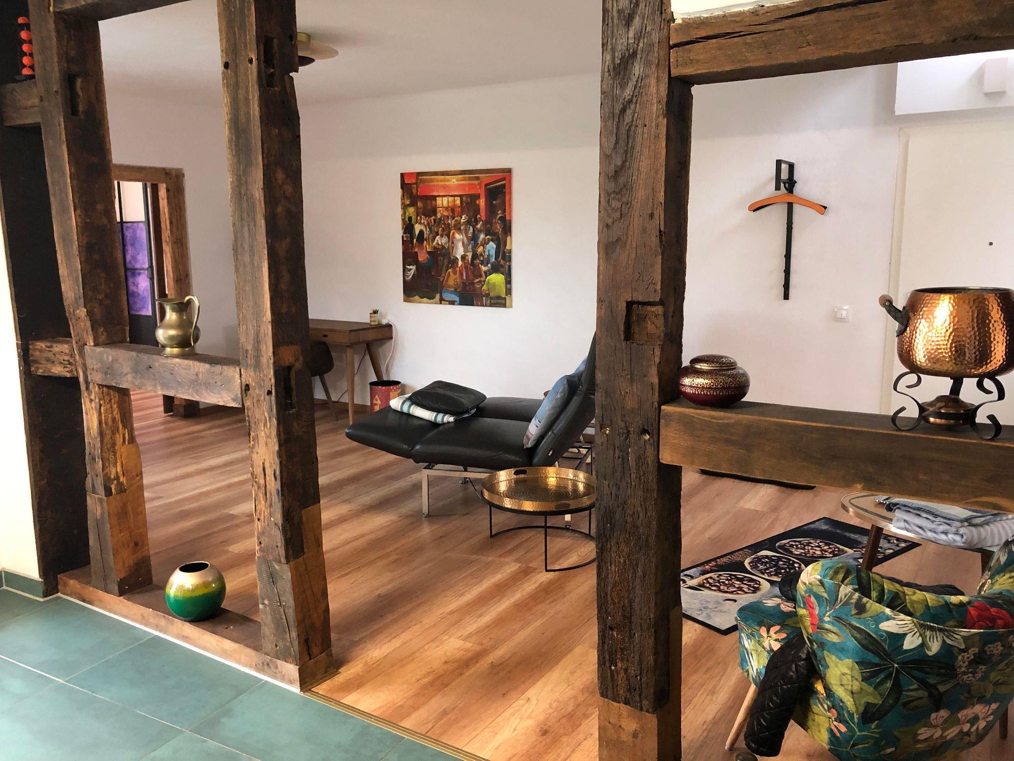 Die Wohnung ist offen gestaltet, in einem Mix aus altem Bauernhaus und Industrie-Style.