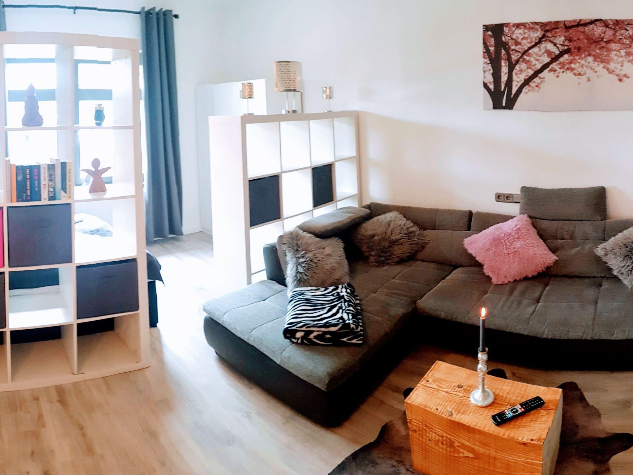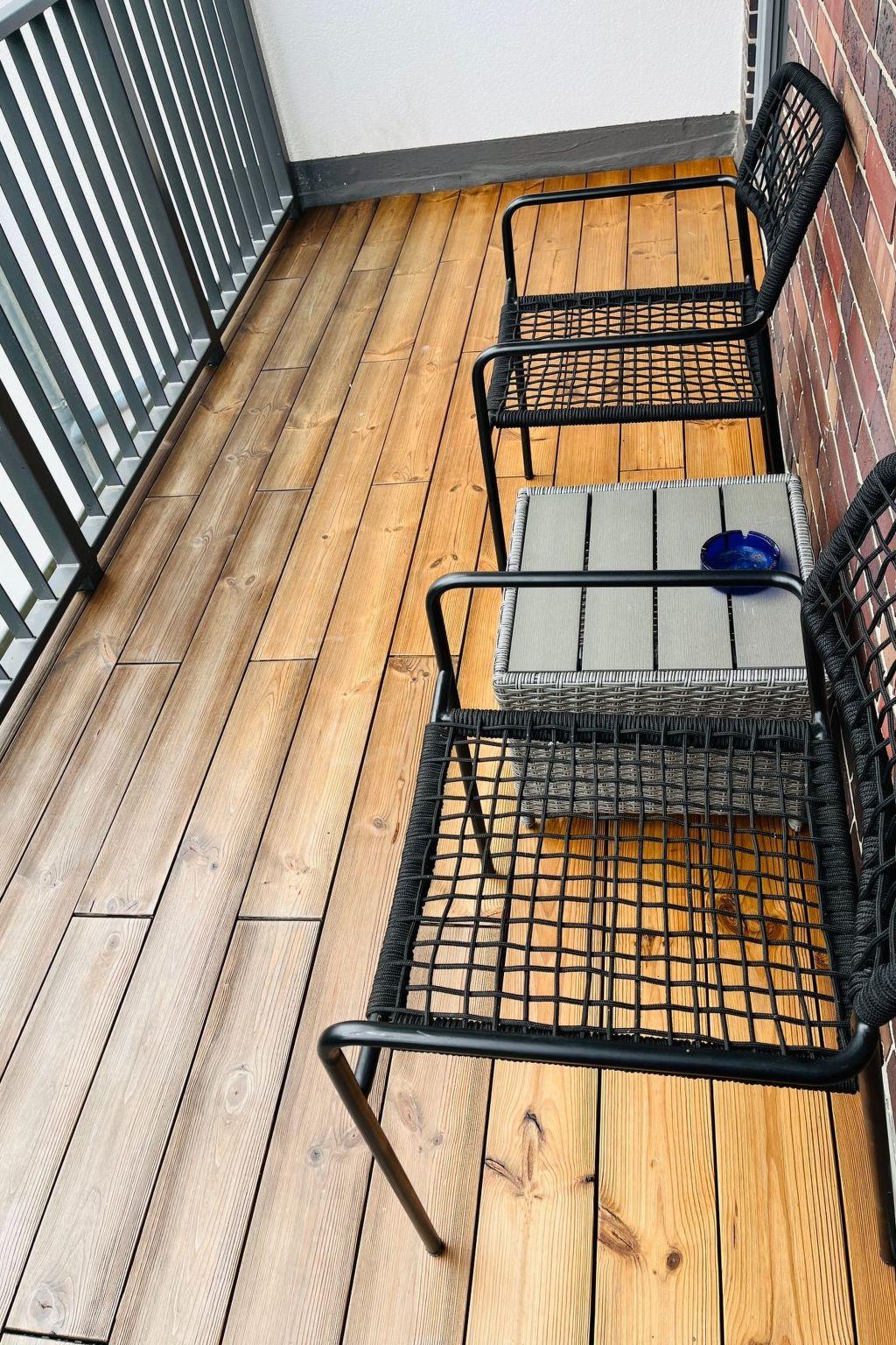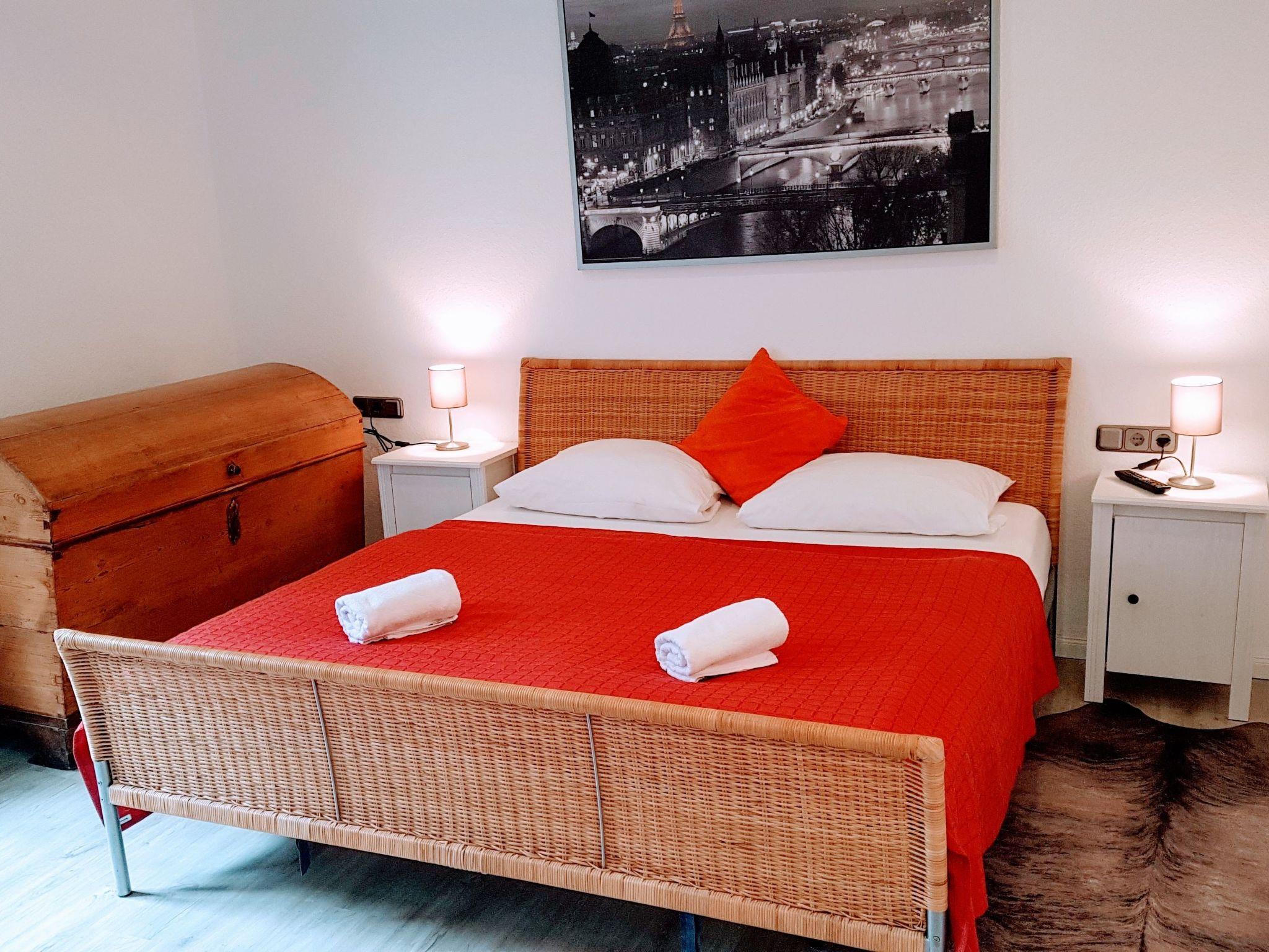 The 3-room flat has its own small balcony with garden view, a private car park on the property and the large, green garden can be used. Please let us know in advance.