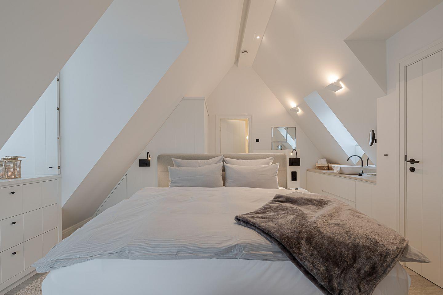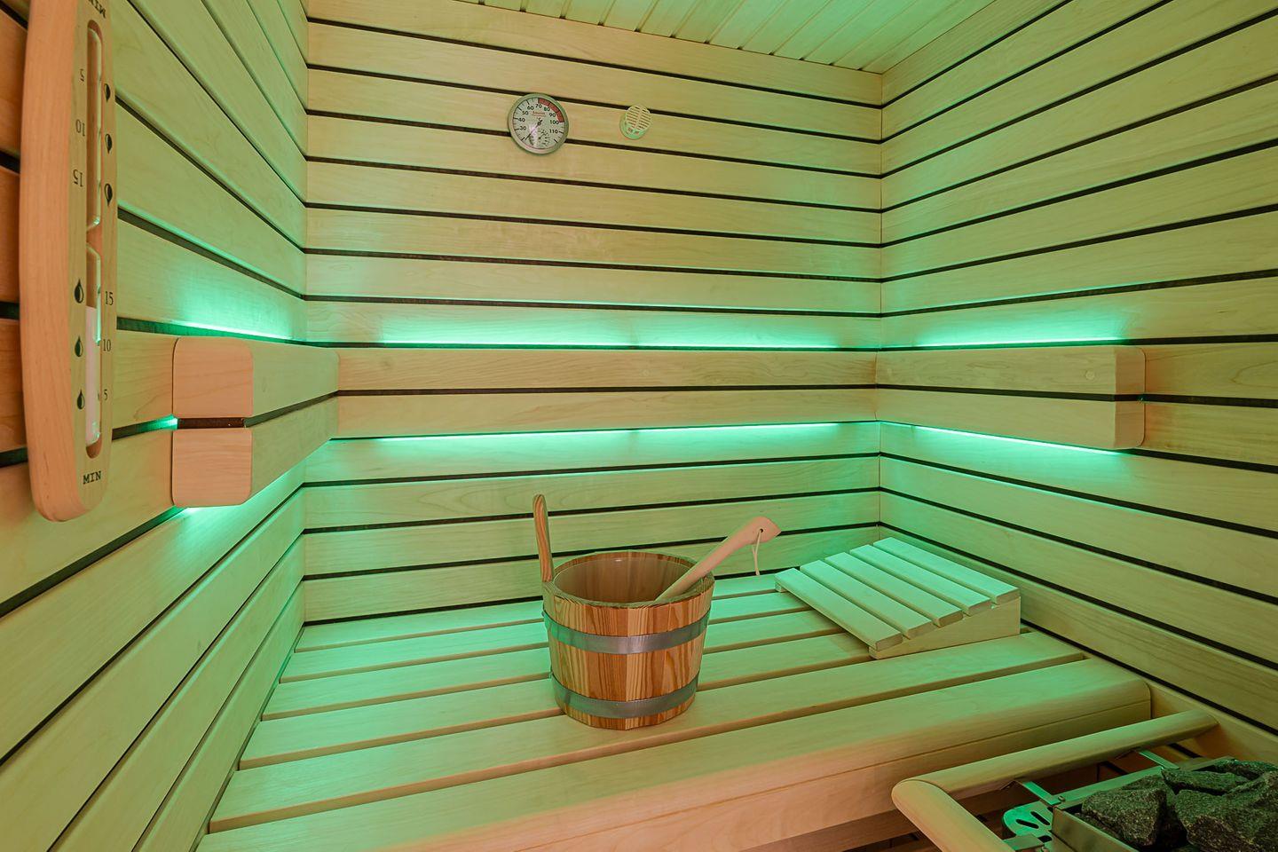 Im oberen Bereich des Hauses finden Sie zwei elegante Schlafzimmer. Das eine, mit einem großzügigen Boxspringbett (1,80 x 2,00 m) und einem luxuriösen Bad en Suite, bietet Ihnen absolute Privatsphäre und Komfort. Das andere Schlafzimmer, ebenso mit einem hochwertigen Boxspringbett (1,80 x 2,00 m), verwöhnt Sie mit einem Hauch von Exklusivität und ebenfalls einem eigenen TV. Im Souterrain erwartet Sie ein zusätzliches Schlafzimmer mit Schlafcouch – ideal für Gäste oder kleine Auszeiten. Hier befindet sich auch ein modernes Bad mit Dusche sowie eine private Sauna für die besonderen Momente der Entspannung.