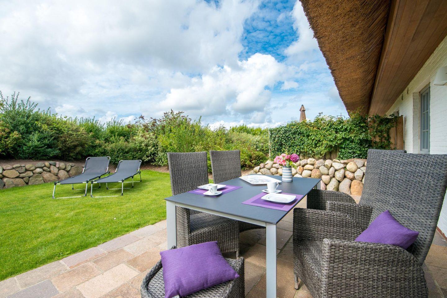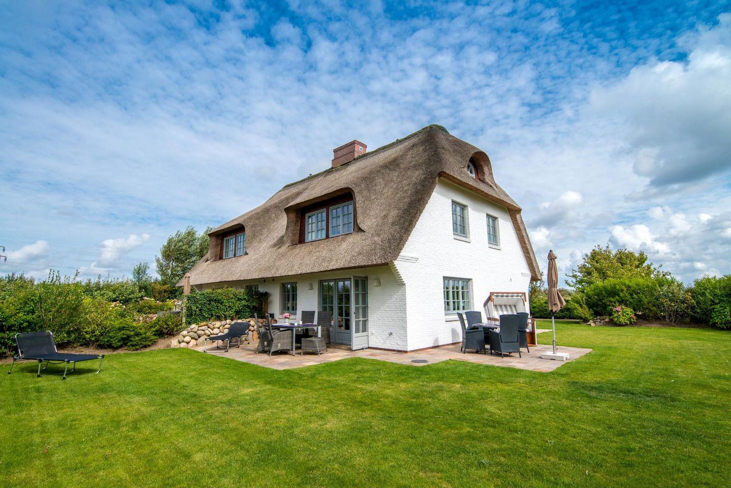 Die stilvoll eingerichtete Friesenhaushälfte nahe der Keitumer Deichwiesen lädt mit seinen hellen, offenen und sehr durchdachten Raumkonzept zum Wohlfühlen ein. Das Haus verfügt über zwei Doppelschlafzimmer und zwei Bäder, davon eins en suite. Der Saunabereich und der Kamin sorgen nach einem langem Spaziergang für wohlige Wärme und Entspannung. Im sehr gepflegten und herrlich eingewachsenen Garten mit Strandkorbplatz können Sie die Sonne genießen.