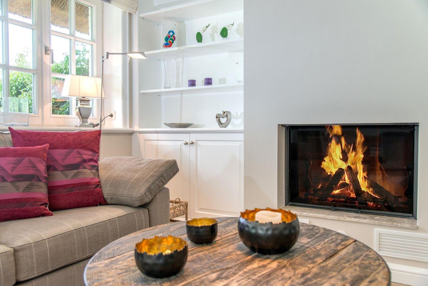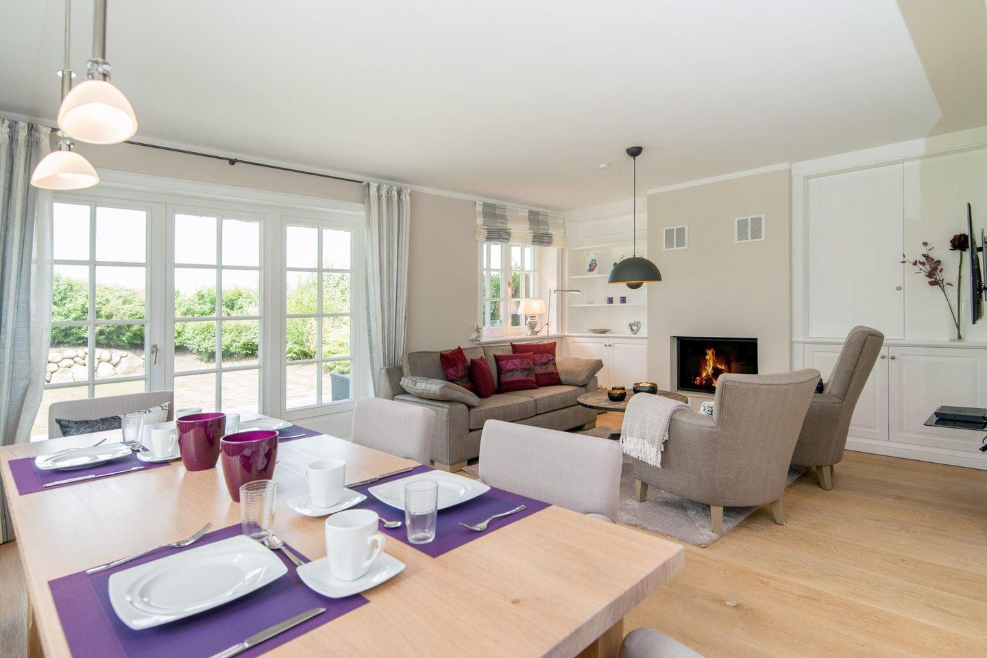 Stilvolle Doppelhaushälfte nahe der Keitumer Deichwiesen lädt mit einem durchdachten Farbkonzept, hellen und offenen Räumen sowie einem Kamin zum Wohlfühlen ein.