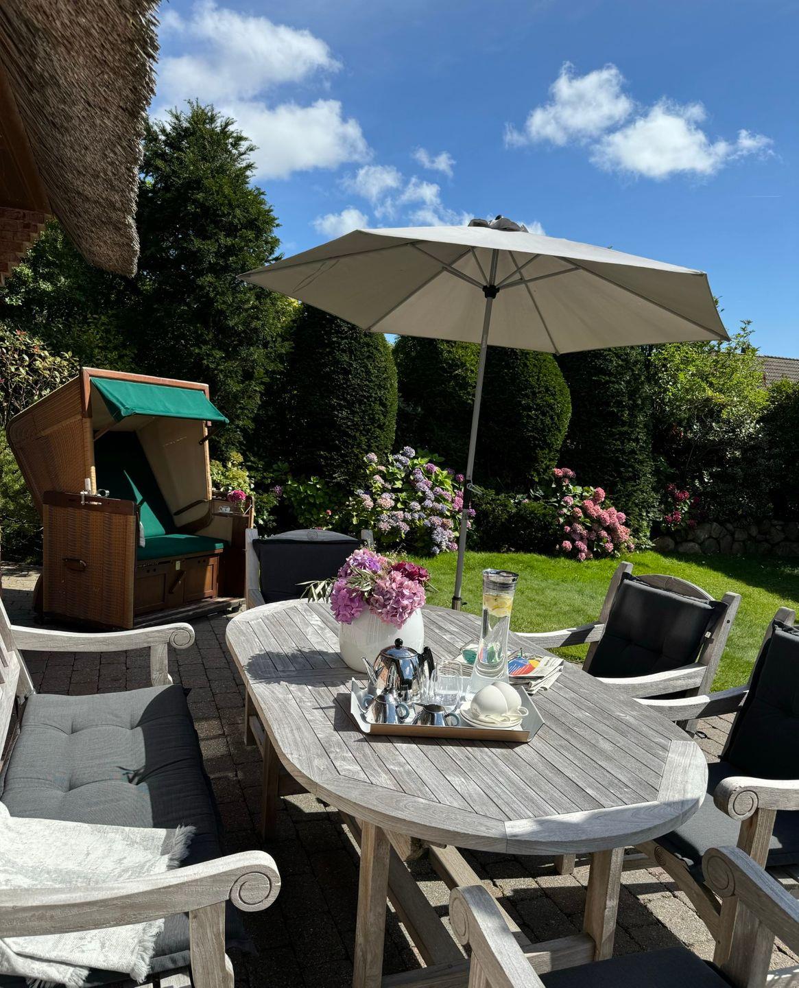 für bis zu 5 Personen gefunden. Harmonische Farben sorgen für eine sehr angenehme und heimelige Atmosphäre. Das großzügige Wohnzimmer mit kuschliger Sofaecke und Kaminofen eignet sich ideal zum Entspannen. Auch der liebevoll angelegte Garten mit großer Sonnenterrasse lädt zum Verweilen ein. Ihr Sylt Urlaub kann beginnen! Maximal ein Hund auf Anfrage ist gestattet.