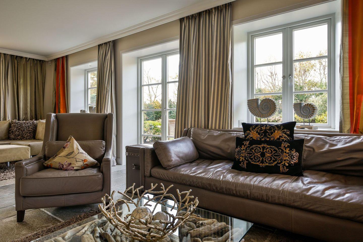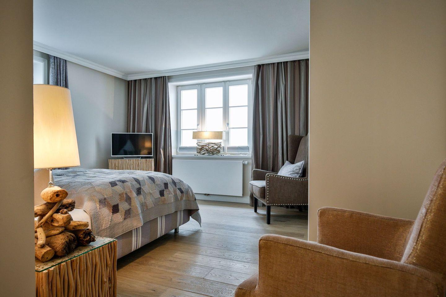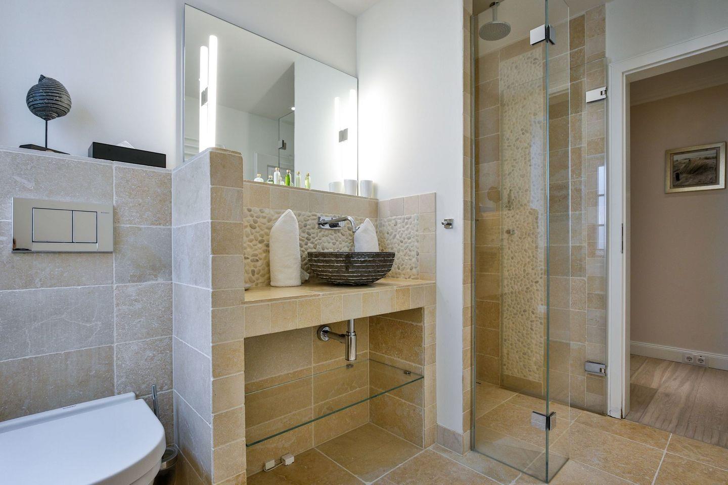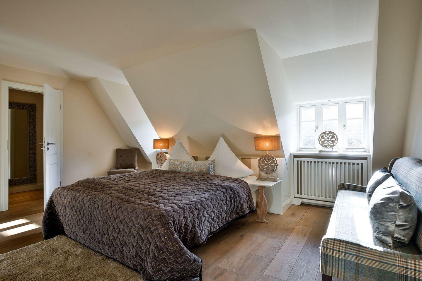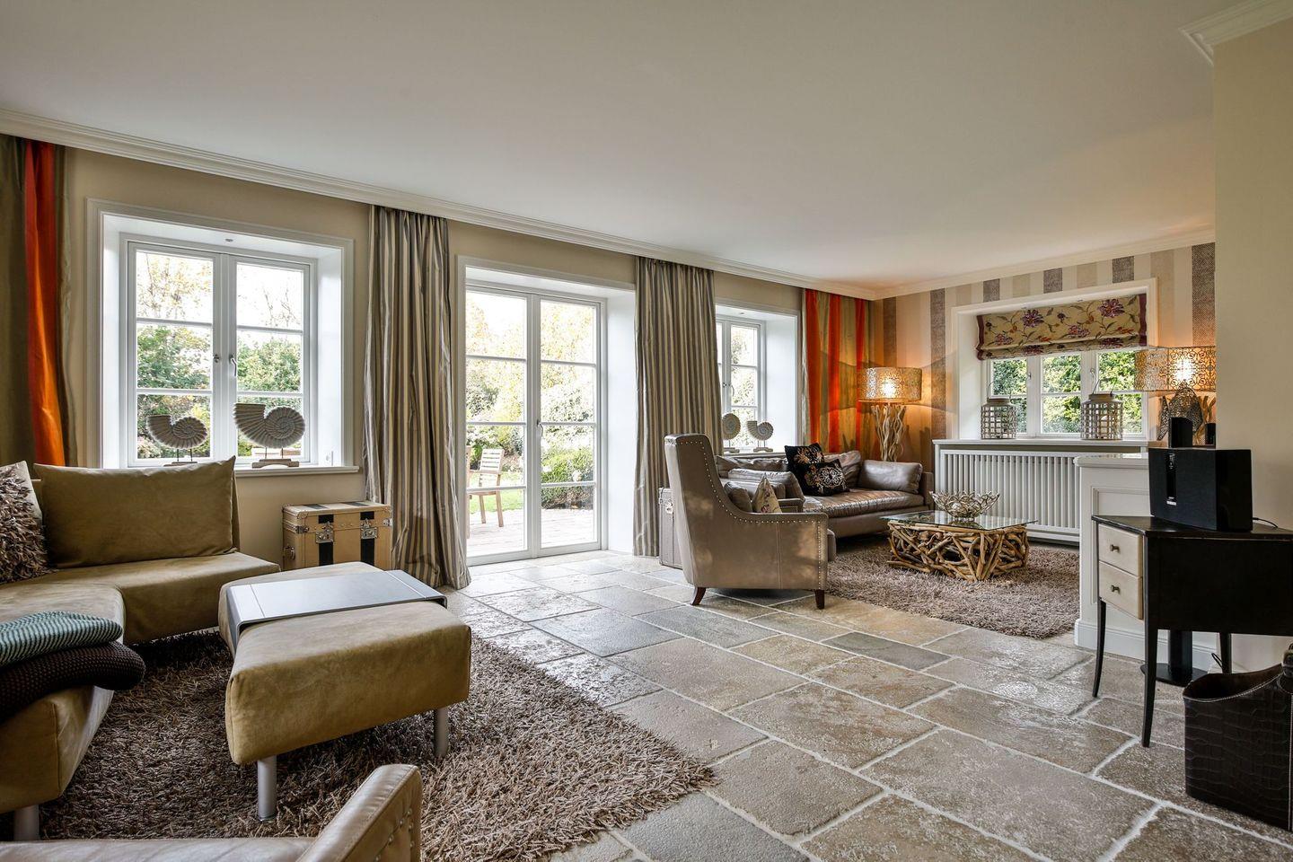 Das Haus ist hochwertig und exklusiv ausgestattet und von einem großzügigen Garten umgeben. Selbstverständlich ist dieses Haus mit 5 Sternen des DTV klassifiziert. Diese mit Reet gedeckte Doppelhaushälfte mit Einzelhaus-Charakter liegt fußläufig zur Keitumer St. Severin und in unmittelbarer Nähe zum Wattenmeer. Das helle und großzügige Objekt über drei Ebenen (EG, OG, Souterrain) ist ca. 260 m² groß und bietet zwei bis acht Personen ausreichend Platz. Das geräumige und hochwertige Haus liegt auf einem insgesamt 1.000 m² Grundstück südlich der St. Severin Kirche in Keitum. Das exklusive Doppelhaus wurde mit aufgearbeiteten Ziegelsteinen von 1886 erbaut. Die Räumlichkeiten im Erdgeschoß sind mit großflächigen sehr hochwertigen Natur Limestone ausgelegt, im Obergeschoß liegen Echtholzeichendielen, das gesamt Souterrain und die Bäder sind ebenfalls mit Limestone verlegt. Im Erdgeschoss und im Souterrain ist jeweils eine Fussbodenerwärmung integriert, zusätzlich sind auch Heizkonvektoren in allen Räumen angebracht. Auf allen Ebenen finden Sie hochwertige Tischlereinbauten. Darüber hinaus bietet das Haus jeglichen Komfort wie Sauna mit Ruheraum, Gaskamin, Flat-TV's ( streamingfähig) mit Soundbar, WLAN (High-Speed Internet), alle Schlafzimmer und Wohnzimmer mit Flachbildschirmen, Alarmanlage, Geschirrspüler, Mikrowelle, Backofen, Kühlschrank, Nespresso Kaffeemaschine, Induktionsherd, Safe, Hauswirtschaftsraum mit Waschmaschine und Trockner und zwei Pkw-Stellplätze. Bademäntel sind für Sie als unser Gast in diesem Domizil kostenfrei. Die Betten sind jeweils 1,80 x 2,00 m mit durchgängiger Matratze. Das Haus ist von einem großzügigen gepflegten Garten mit zwei Terrassen und Friesenwälle umgeben. Das Haus ist ausschließlich für Nichtraucher (auf der Terrasse wäre es erlaubt).