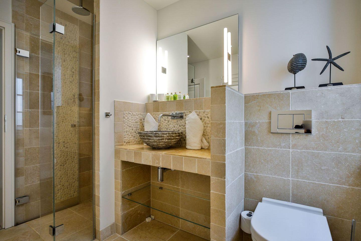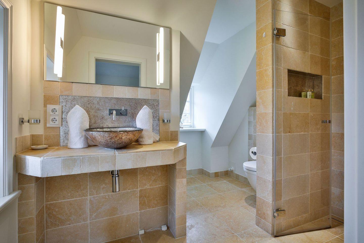 Bad 2: helles en Suite ein helles Bad mit Dusche und Handtuchwärmer