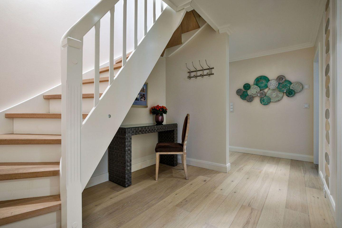 Flur: Eingangsbereich mit Spiegel und Garderobe, Treppe ins Obergeschoß und zum Souterrain