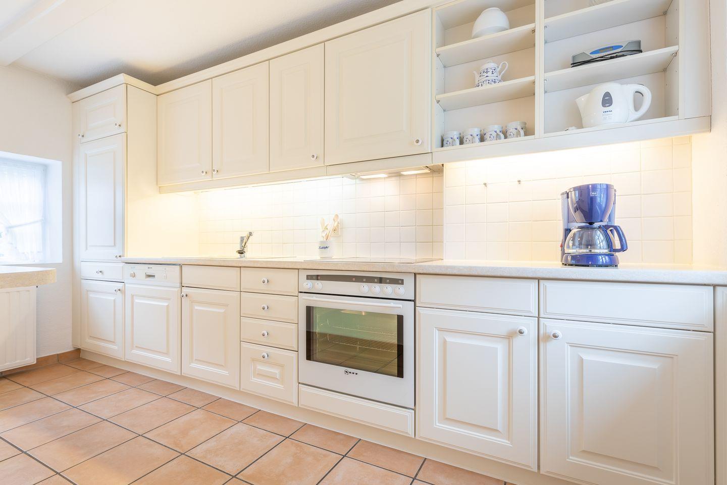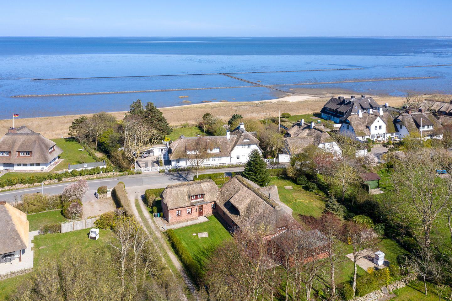 Das reetgedeckte, ca. 75 m², große Haus liegt zum Wattenmeer ca. drei Gehminuten entfernt. Die helle mediterrane Einrichtung ist geprägt durch hochwertige Tischlereinbauten und Terrakotta-Boden. Die Wohnung verfügt über Komfort wie Flat-TV, DVD-Player, W-LAN, Stereoanlage mit CD, Telefon, Geschirrspüler, Backofen und Fußbodenheizung im Erdgeschoß.