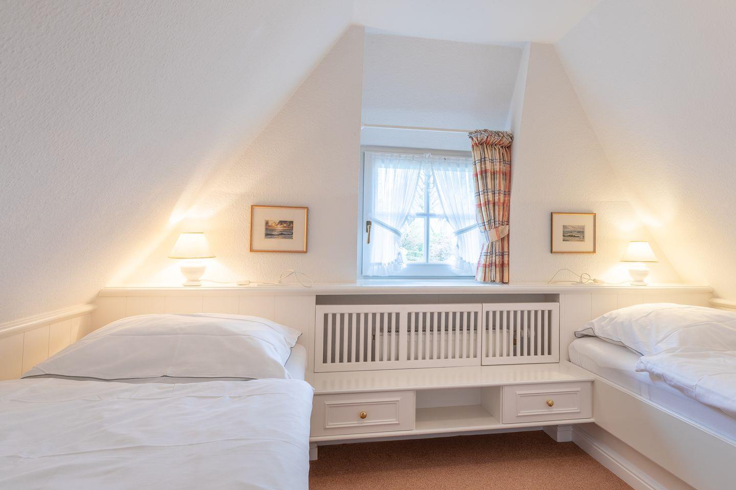 Schlafen 2: Schlafraum mit zwei Einzelbetten unter Schrägen und Einbauschrank