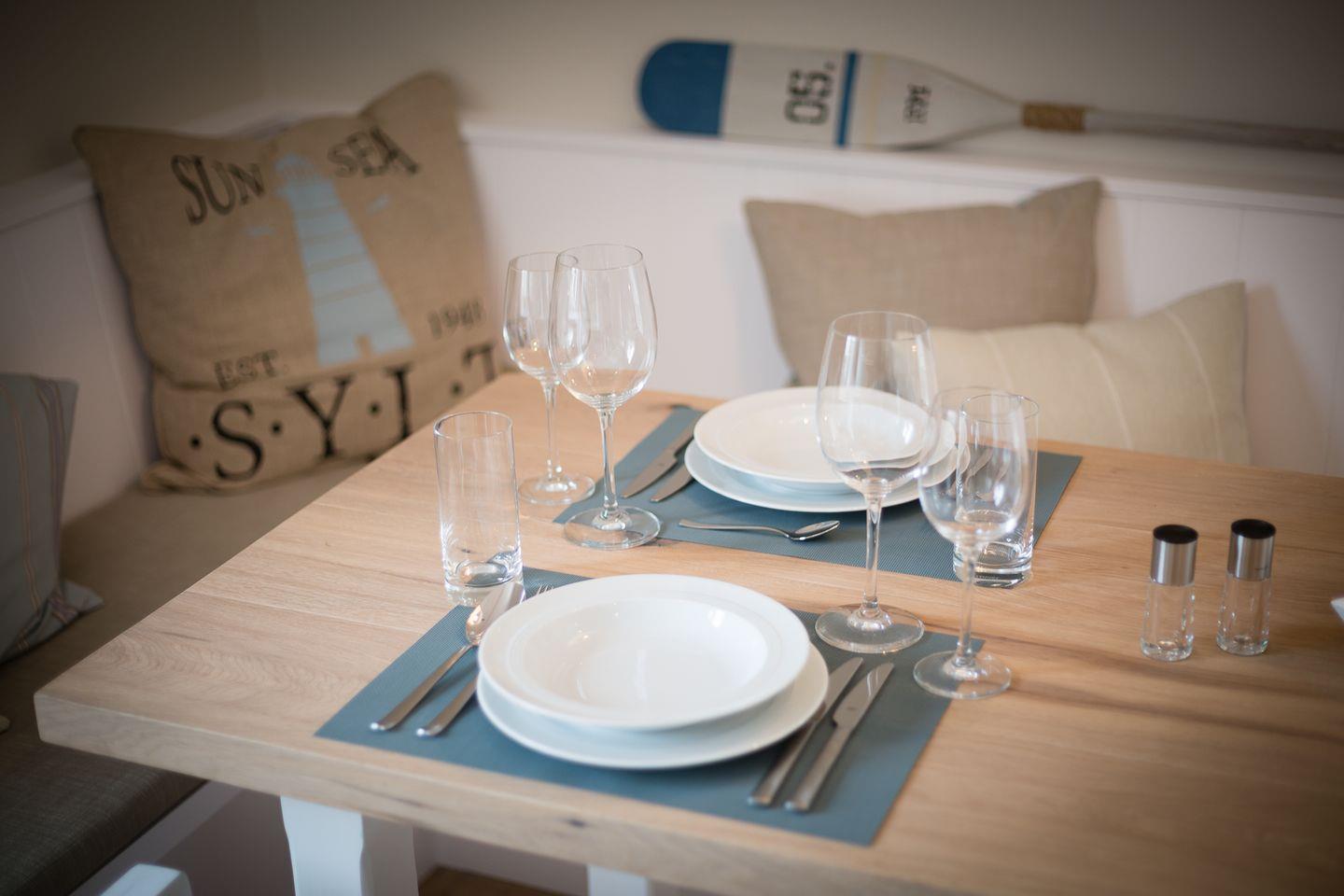 Diese frisch renovierte Erdgeschoss Wohnung ist ca. 55 m² und bietet bis zu zwei Personen eine besondere Wohlfühlatmosphäre zum Erholen. Ausgesuchtes hochwertiges Interior, miteinander harmonisierende Farben und stylische Wohnaccessoires geben der Wohnung das gewisse Etwas. Sie bietet Komfort wie Backofen, Mikrowelle, Geschirrspüler, Cerankochfeld, Senseo Kaffeemaschine und Flat-TV. Für Sonnenstunden steht Ihnen eine Terrasse mit Strandkorb, Sonnenliegen und Gartengestühl zur Verfügung. Der Strandkorb und die Gartenmöbel stehen Ihnen von ca. April - Oktober zur Verfügung.