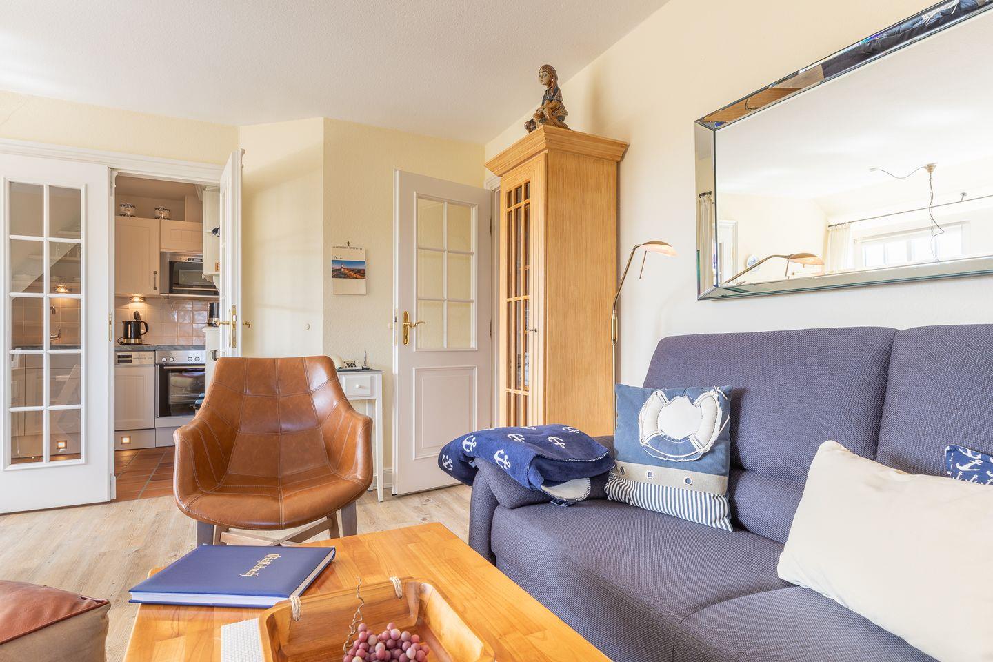 Das reetgedeckte Haus liegt ca. fünf Gehminuten vom Wattenmeer entfernt. Die Einrichtung ist hochwertig, sehr gepflegt und gemütlich. Die Wohnung verfügt über jeglichen Komfort wie zwei Flat-TV, WLAN, Stereoanlage mit CD/ DVD, Geschirrspüler, Cerankochfeld, Nespresso, Mikrowelle mit integrierter Dunstabzugshaube, Backofen und Waschtrockner. Zur Wohnung gehört keine Gartennutzung.