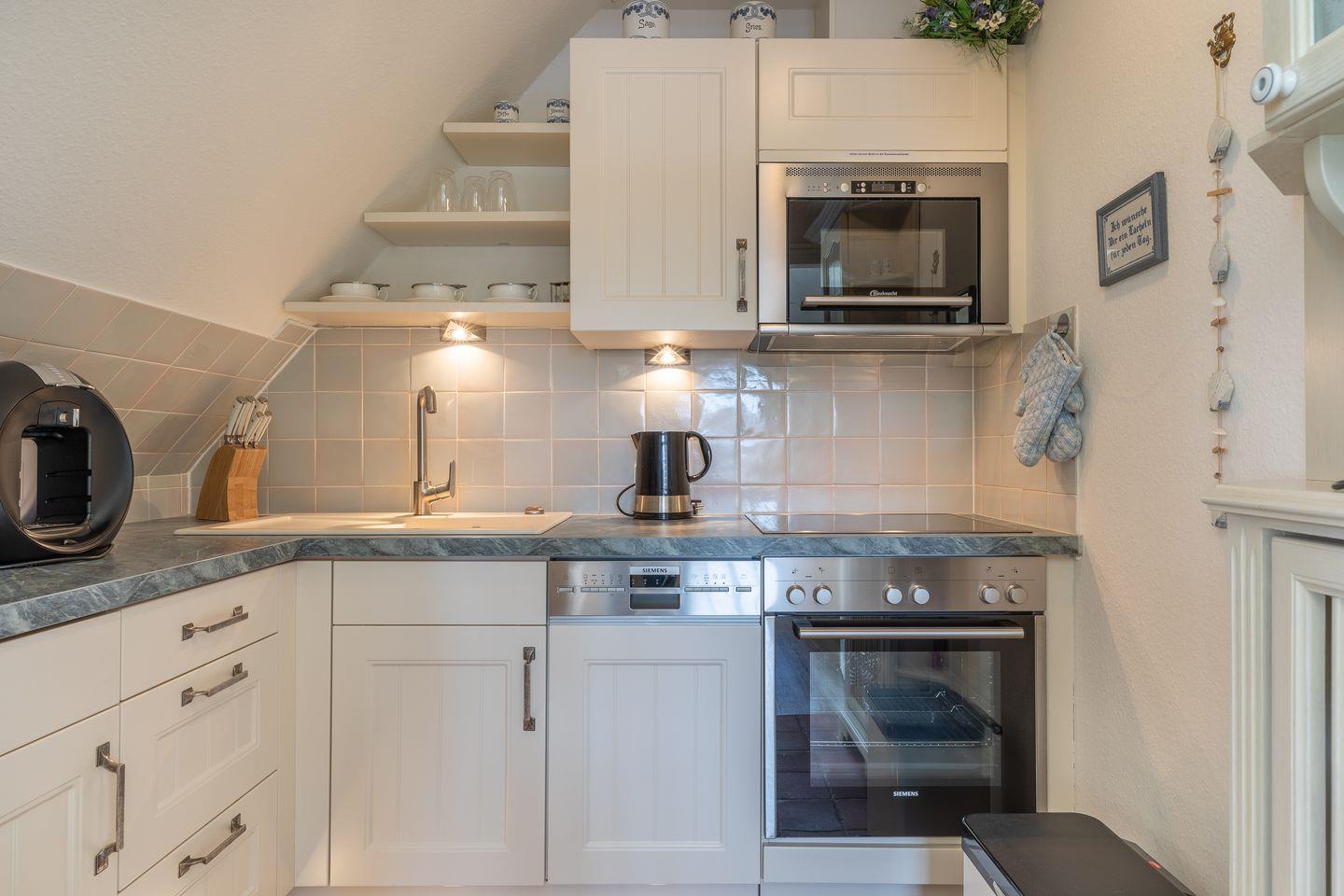 Küche (NEU): durch Flügeltüren trennbare moderne Einbauküche mit Backofen, Geschirrspüler, Cerankochfeld, Mikrowelle etc.
