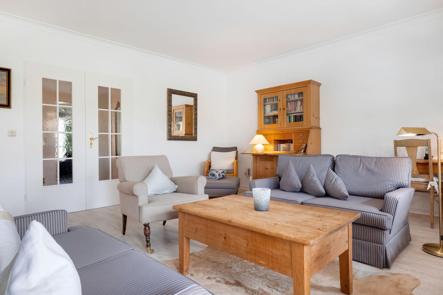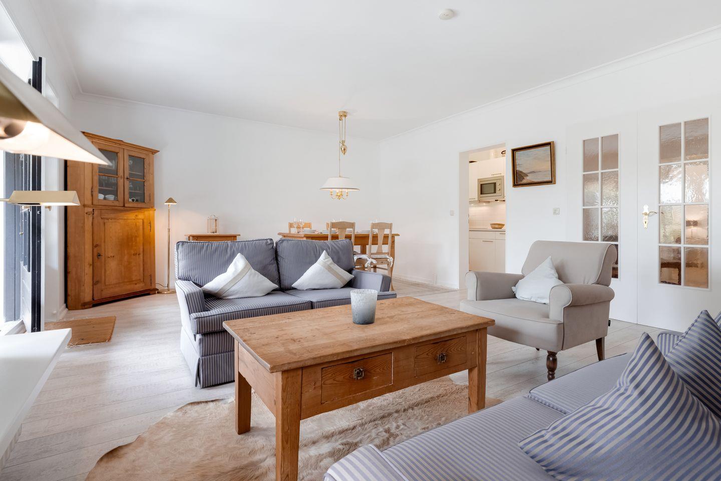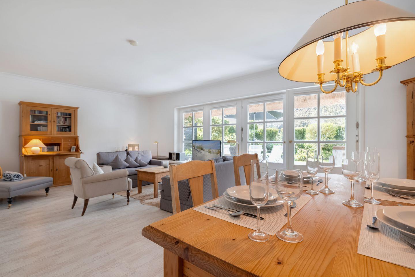 Die Wohnung befindet sich mit acht Eigentumswohnungen in einer reetgedeckten Wohnanlage in Südwestlage. Der großzügige Schnitt und die gemütliche Einrichtung bieten viel Raum zum Wohlfühlen. Sie finden Komfort wie Smart-TV, Stereoanlage mit CD, Telefon, W-Lan, Geschirrspüler, Backofen, Cerankochfeld und Mikrowelle.