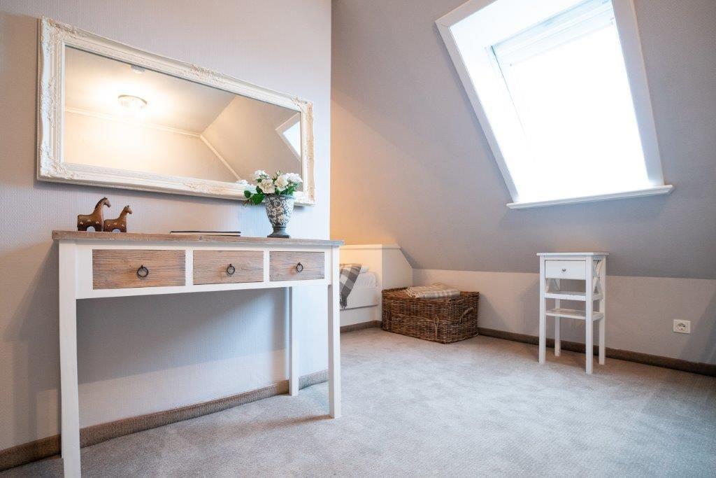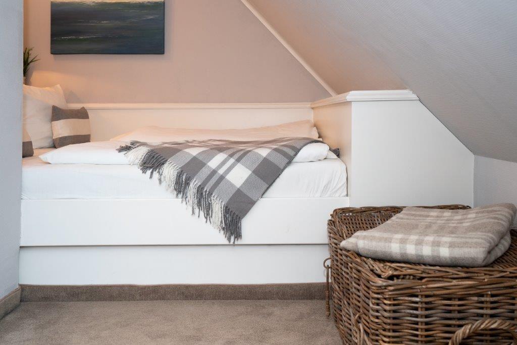 Dachgeschoß: 1 Schlafraum mit Doppelbett 160 x 200 cm und 1 Schlafraum mit eingebauten Doppelbett 160 x 200 cm