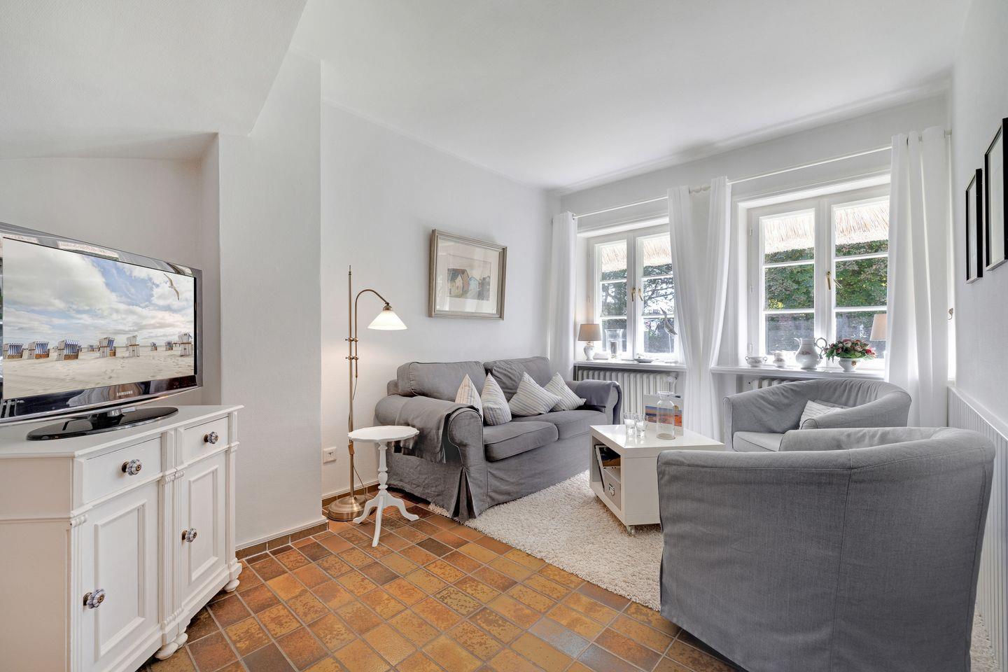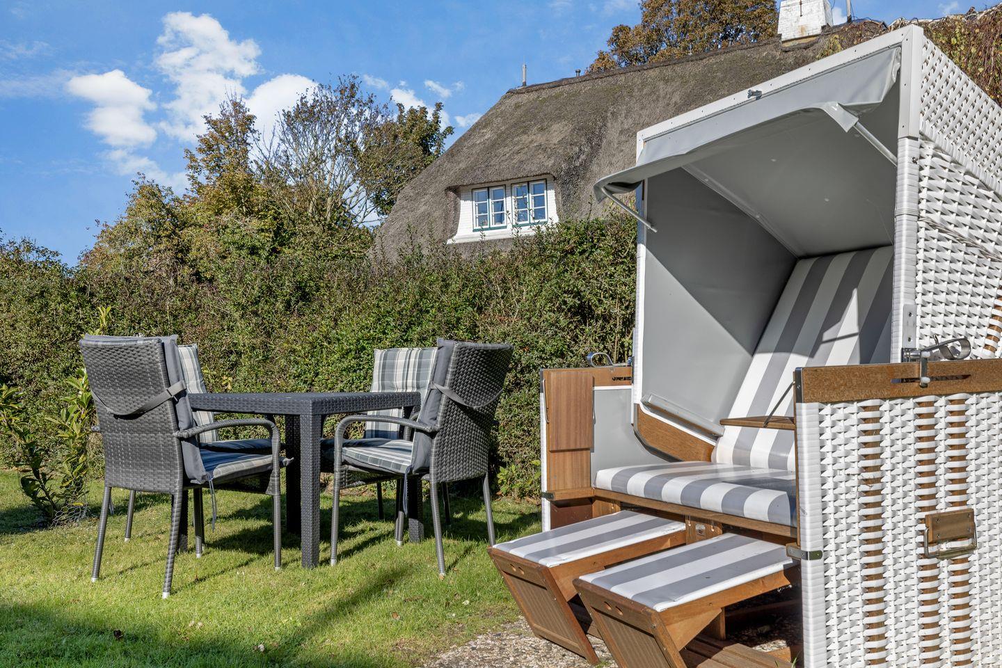Der „Dohlenhof“ ist im Süden Keitums gelegen und bietet im reetgedeckten Friesenhaus zwei Ferienwohnungen mit jeweils eigenem Eingang und unmittelbarem Gartenzugang.