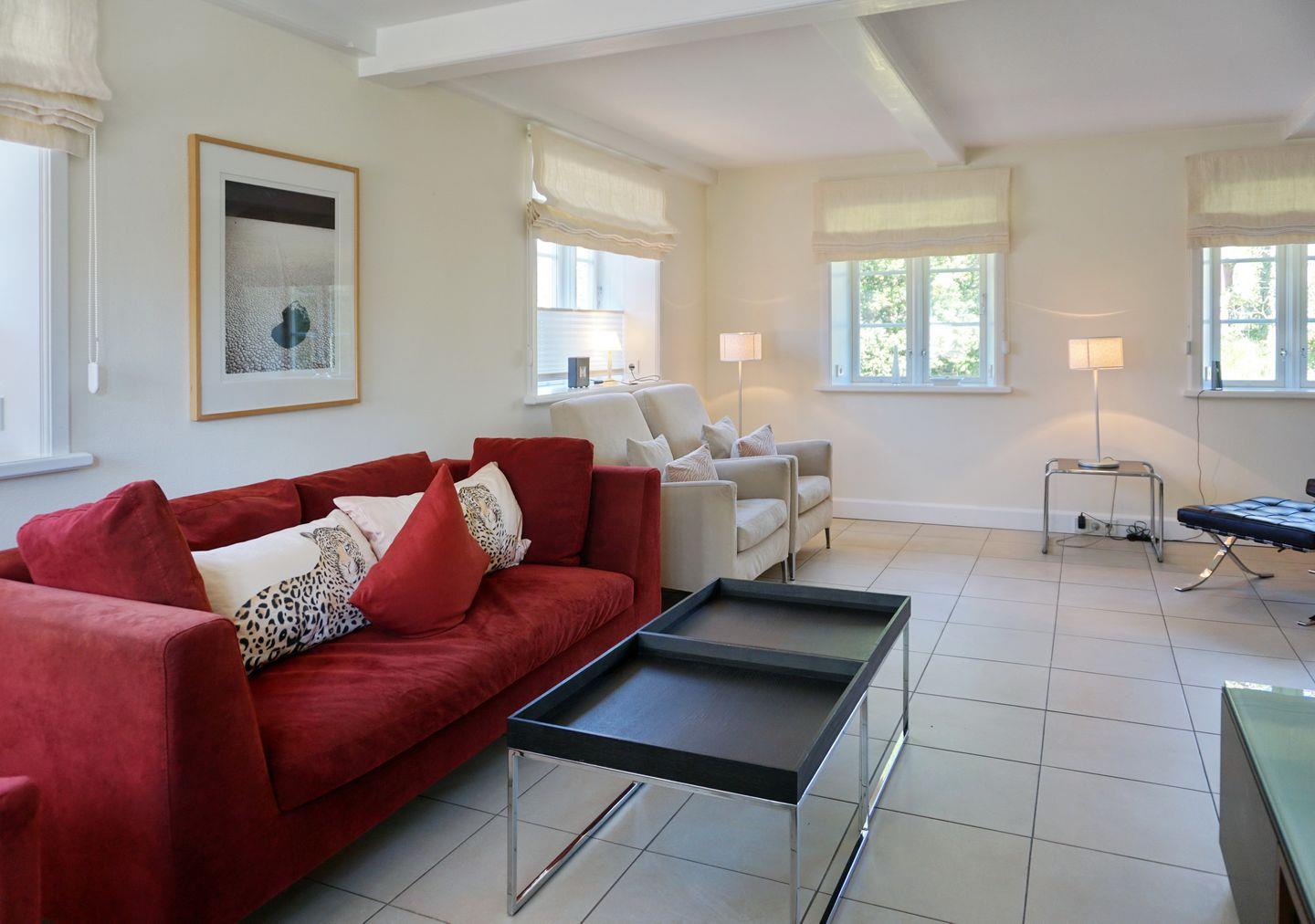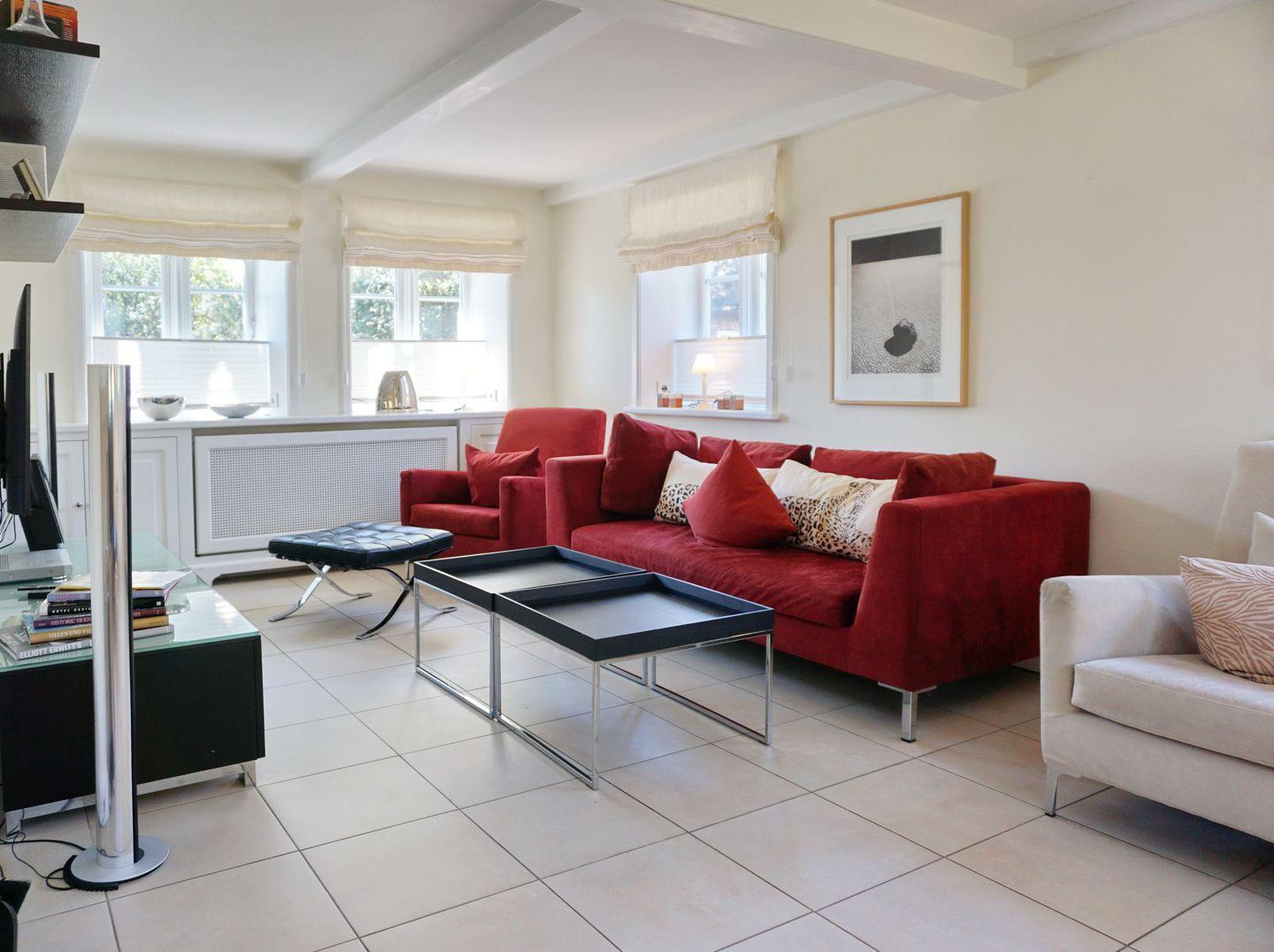 stilvoll eingerichteter Wohnraum mit offenem Kamin (darf genutzt werden)