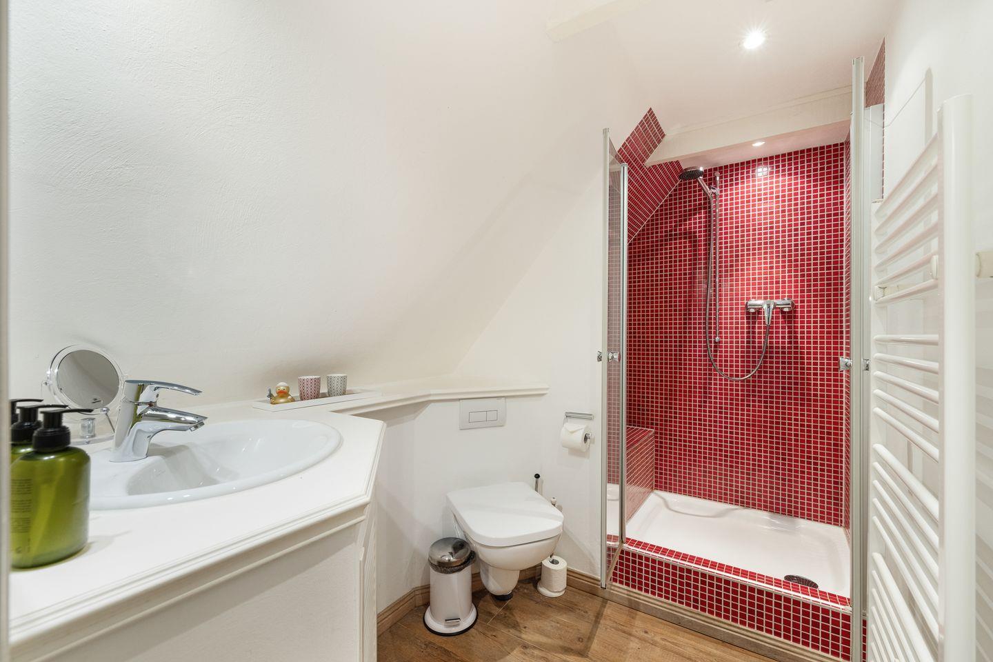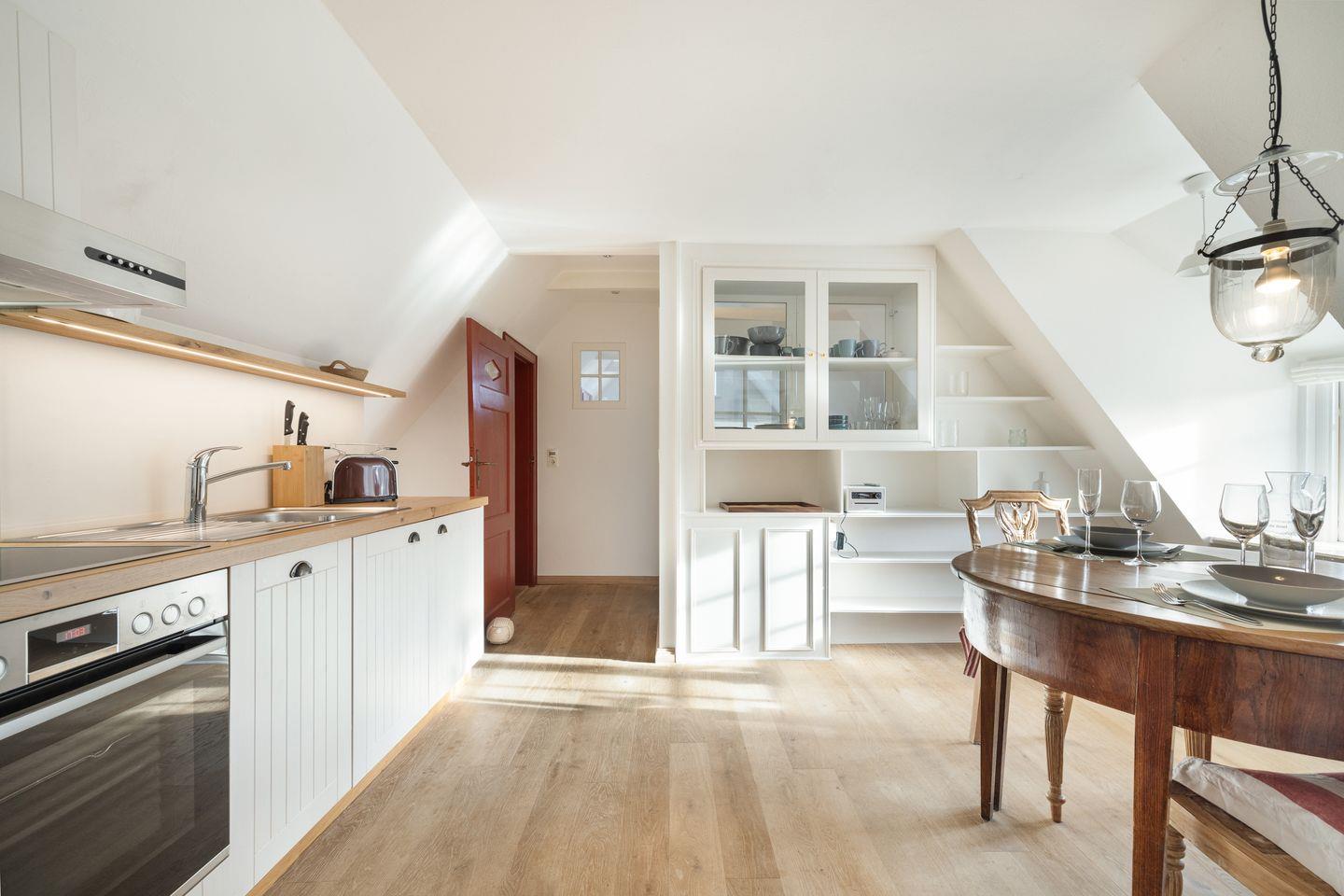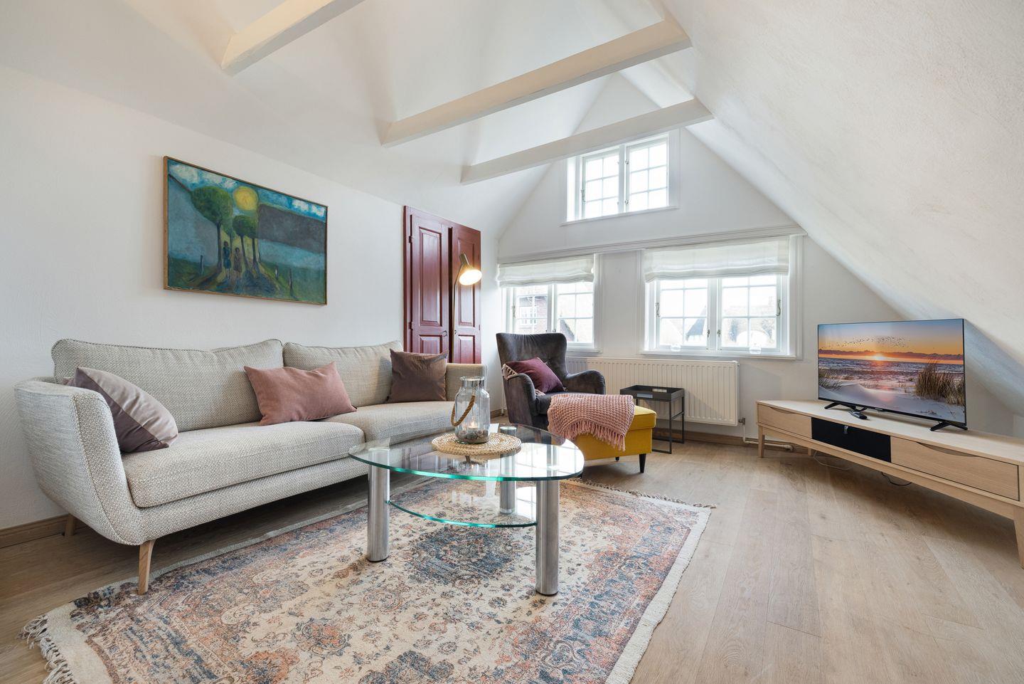Das Appartement im Obergeschoss im reetgedeckten Haus mit ca. 50 m² Nutzfläche.
