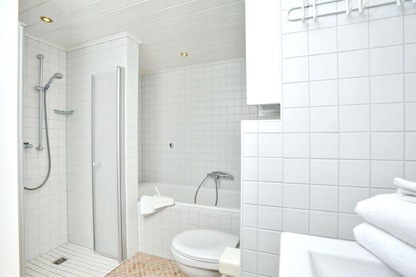 Bad mit Wannenbad, Dusche, Waschbecken, WC, Fön