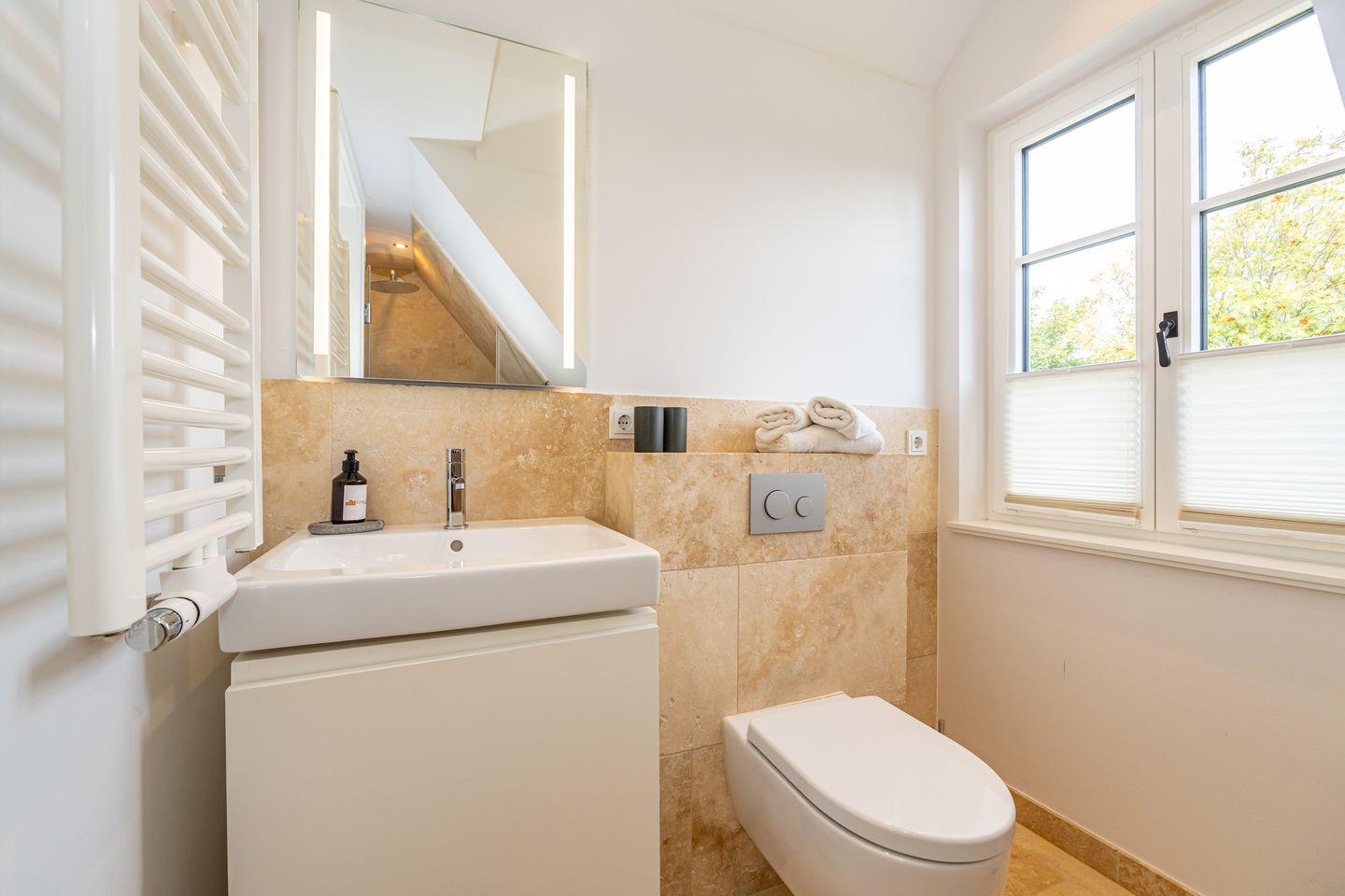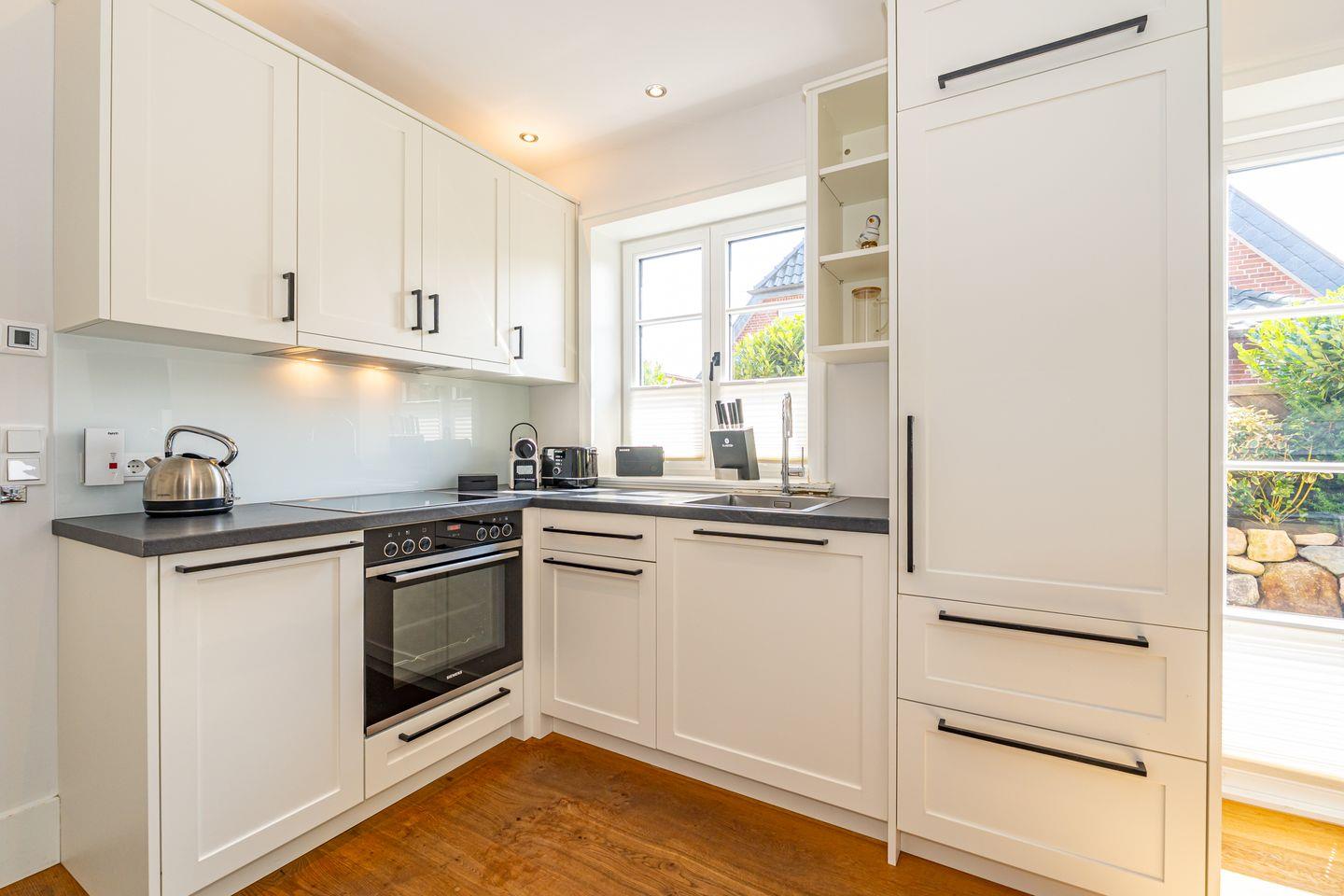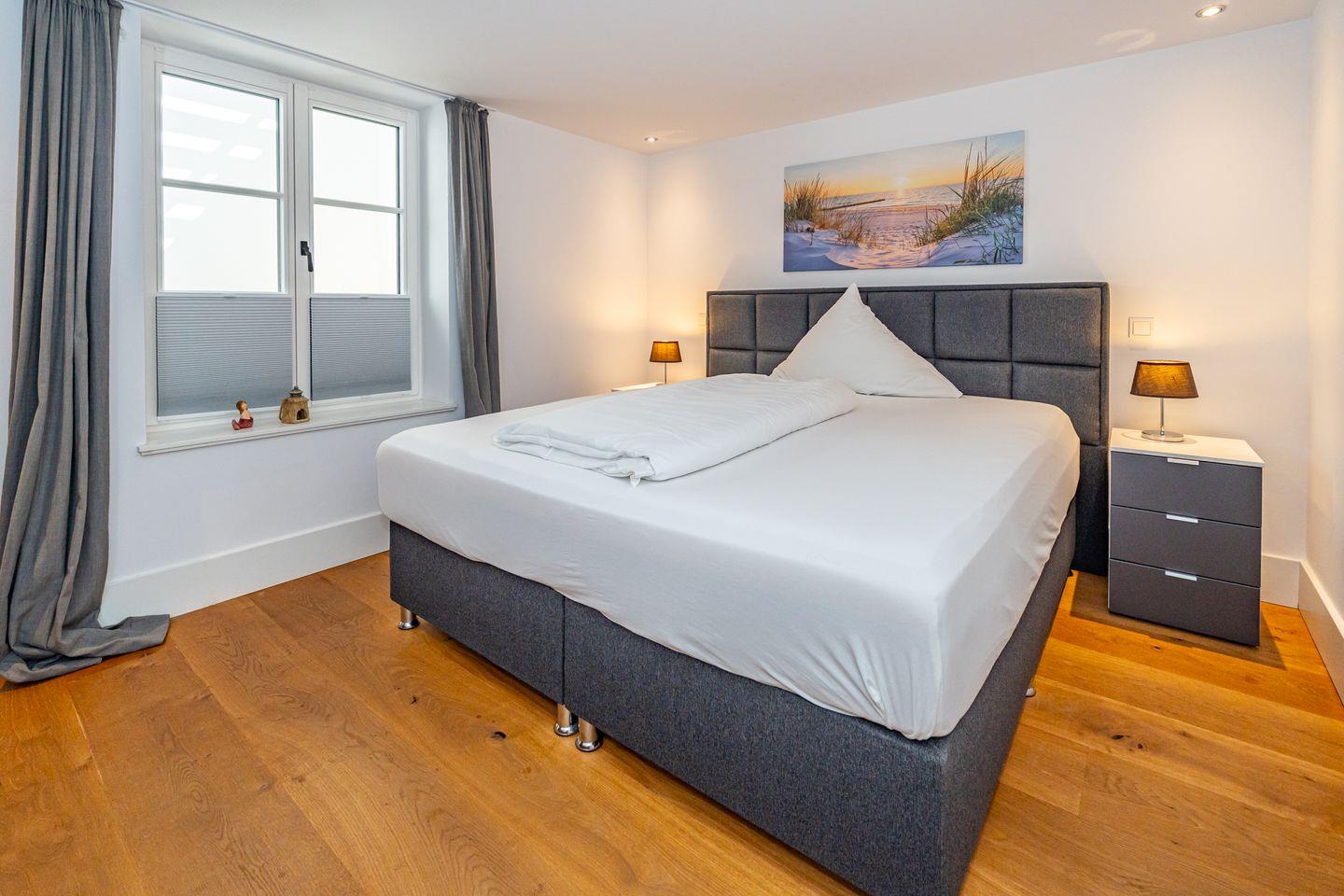 Im Erdgeschoss dieses End-Ferienhausteil befindet sich der helle Wohn- und Essbereich mit einer offenen Küche, ausgestattet mit einem Backofen, Gefrierfach, Nespressokapselmaschine und Wasserkocher. Von hier aus gelangen Sie auf die Terrasse mit dem typischem Sylter Strandkorb (saisonal) und Gartenmöbeln. Nun sind es nur noch ein paar Schritte zu der Blocksauna, die Ihnen in Ihrem Vorgarten zur alleinigen Nutzung zur Verfügung steht. Ebenfalls im Erdgeschoss befindet sich ein Gäste WC. Im Souterrain liegen zwei der drei Schlafzimmer, selbstverständlich mit gemütlich Boxspringbetten und Flat Screen. Außerdem befindet sich auf dieser Ebene ein Badezimmer mit Dusche. Das dritte Schlafzimmer befindet sich, im ersten Obergeschoss. Ebenso das zweite Badezimmer mit Dusche. Ein Parkplatz befindet sich am Ferienhaus.
