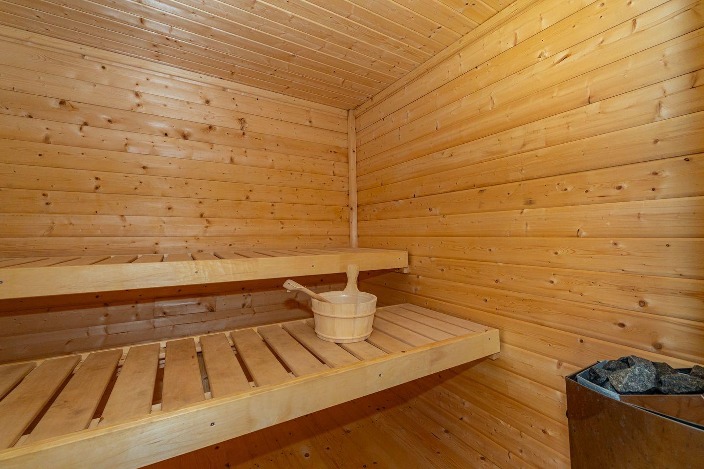 End-Ferienhausteil für max. 6 Personen mit Sauna und Garten.