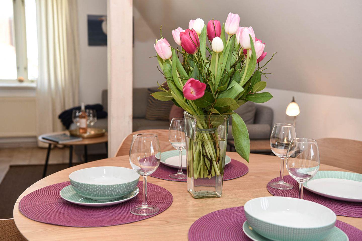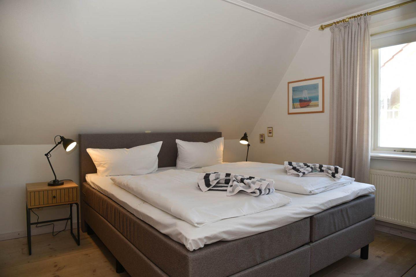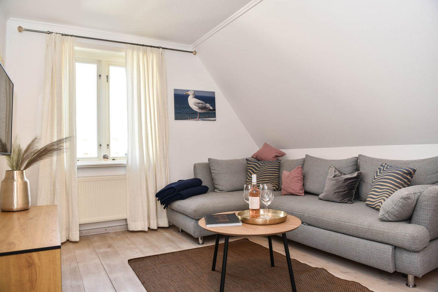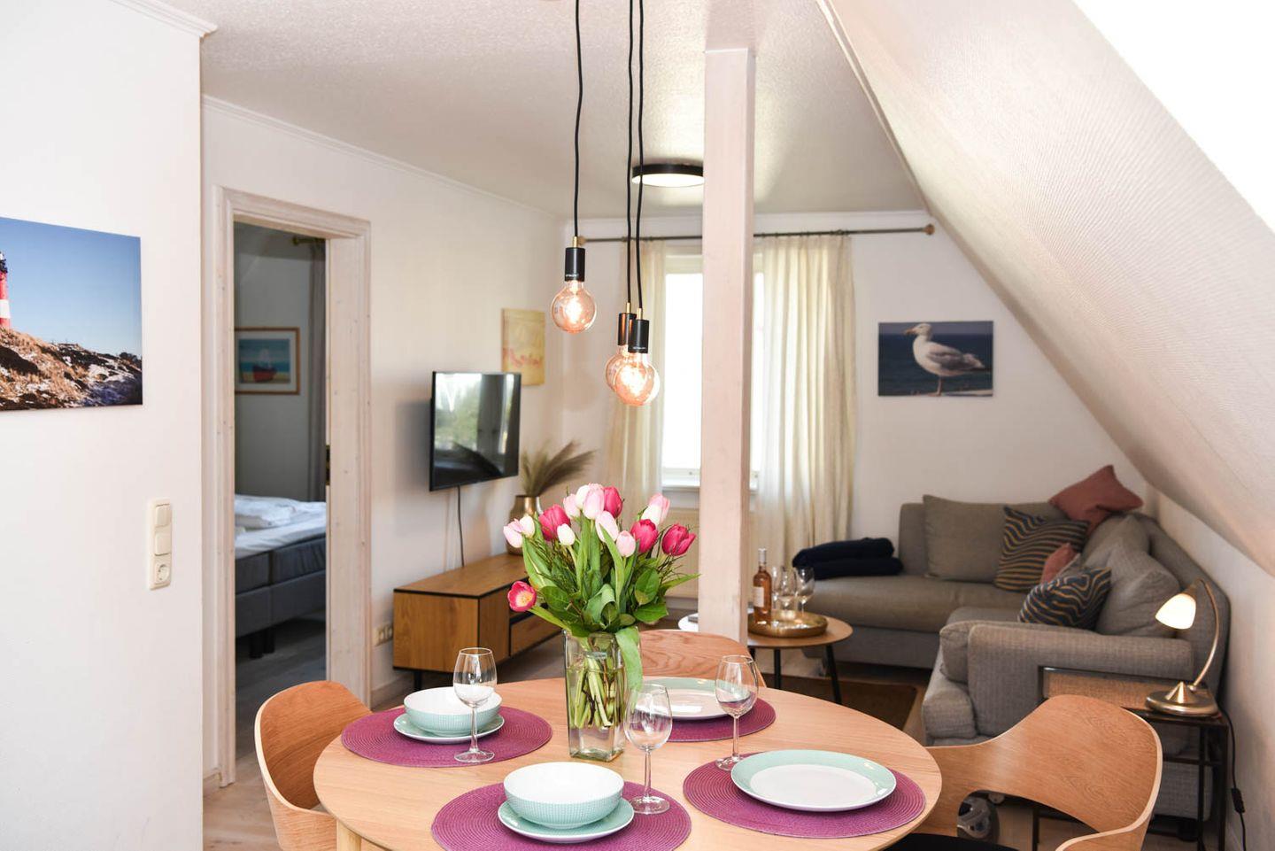 Moin, moin, herzlich Willkommen, mitten im besonders maritimen Urlaubsglück. Diese 3-Zimmer-Ferienwohnung "Oberleutnant“ liegt im Haus "Admiral" und nur einen kurzen Fußweg vom Westerländer Strandübergang an der Friesischen Straße entfernt. Jede Menge Meer ist hier also inklusive, in dem liebevoll ausgestatteten Ferienappartement für bis zu vier Personen im ersten Obergeschoss. Sonnig-lichtes Gelb sorgt für Atmosphäre und echtes Flair, genauso wie die teilweise freiliegenden Balken und die "hyggeligen" Schrägen, die Küche ist offen und natürlich voll ausgestattet bis hin zum Toaster und Messerblock. Die Lage ist für Liebhaber der Inselhauptstadt perfekt, das Zentrum ist so nah, dass man in wenigen Minuten zu Fuß hinkommt und weit genug weg, um Ruhe vom vergnügten Trubel der Saison zu genießen. Sagten wir schon, dass der Strand Luftlinie nur gut 500 Meter entfernt ist? Bei Westwind hören Sie also vielleicht sogar leichtes Meeresrauschen nachts.