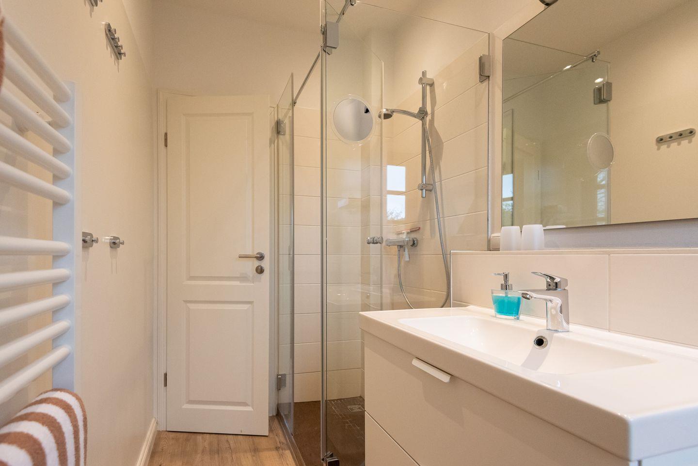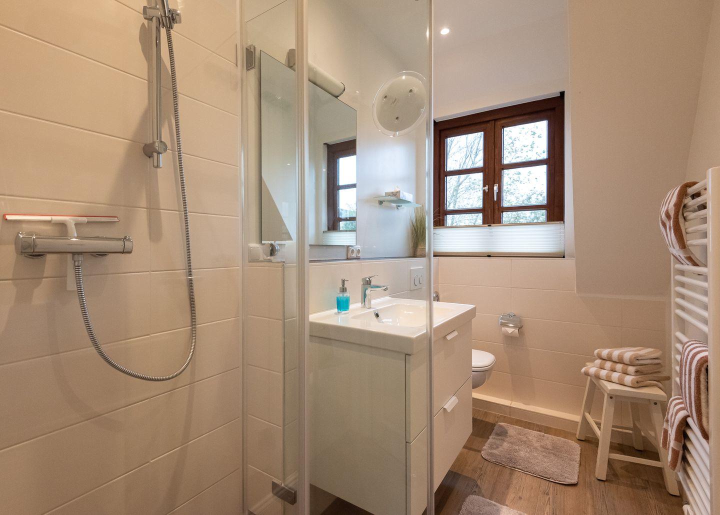 Badezimmer 1: Helles Duschbad mit Fenster.