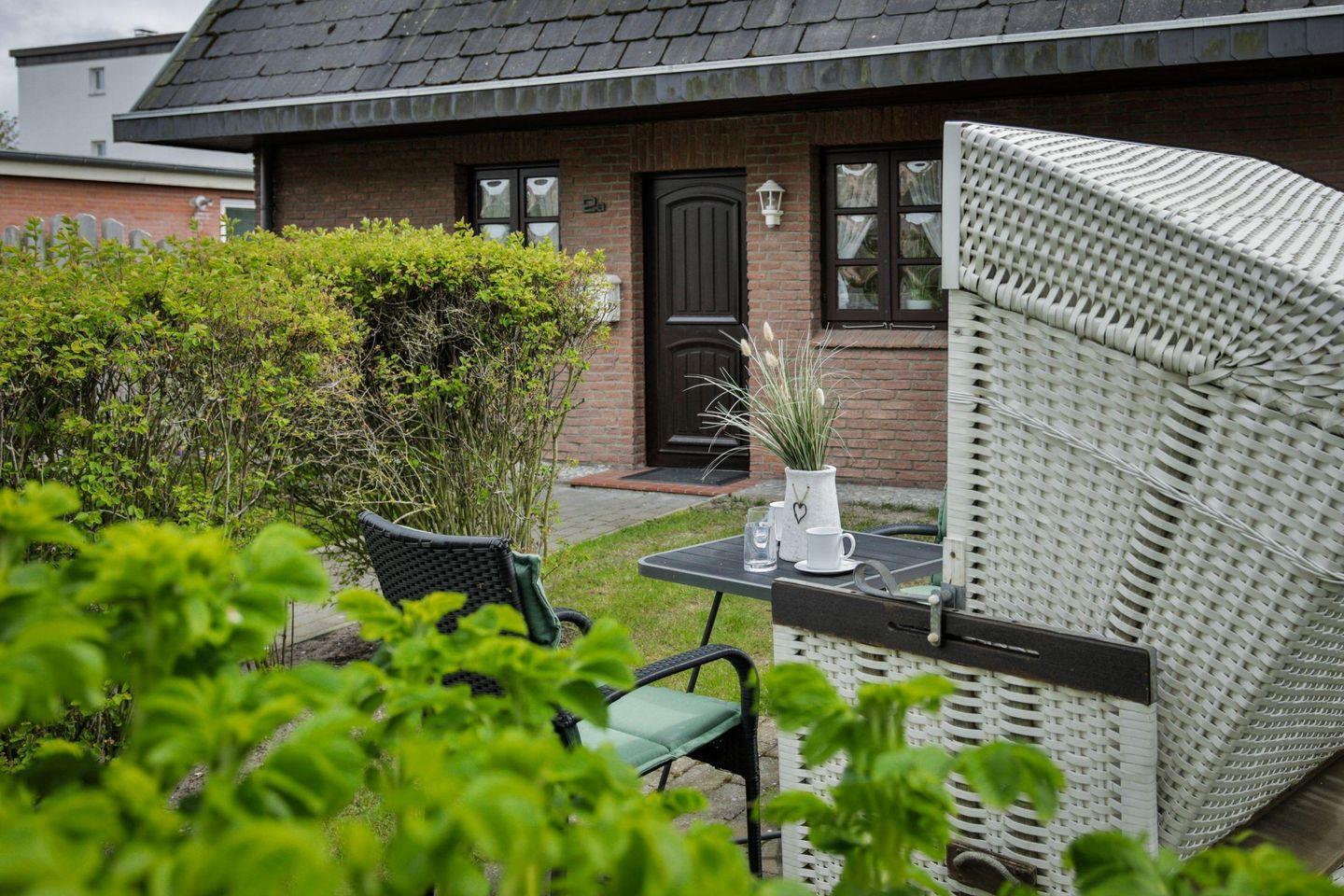 Garten: Im Garten steht Ihnen eine Sonnenkuhle Richtung Norden mit Gartenmöbeln und Strandkorb zur Verfügung.