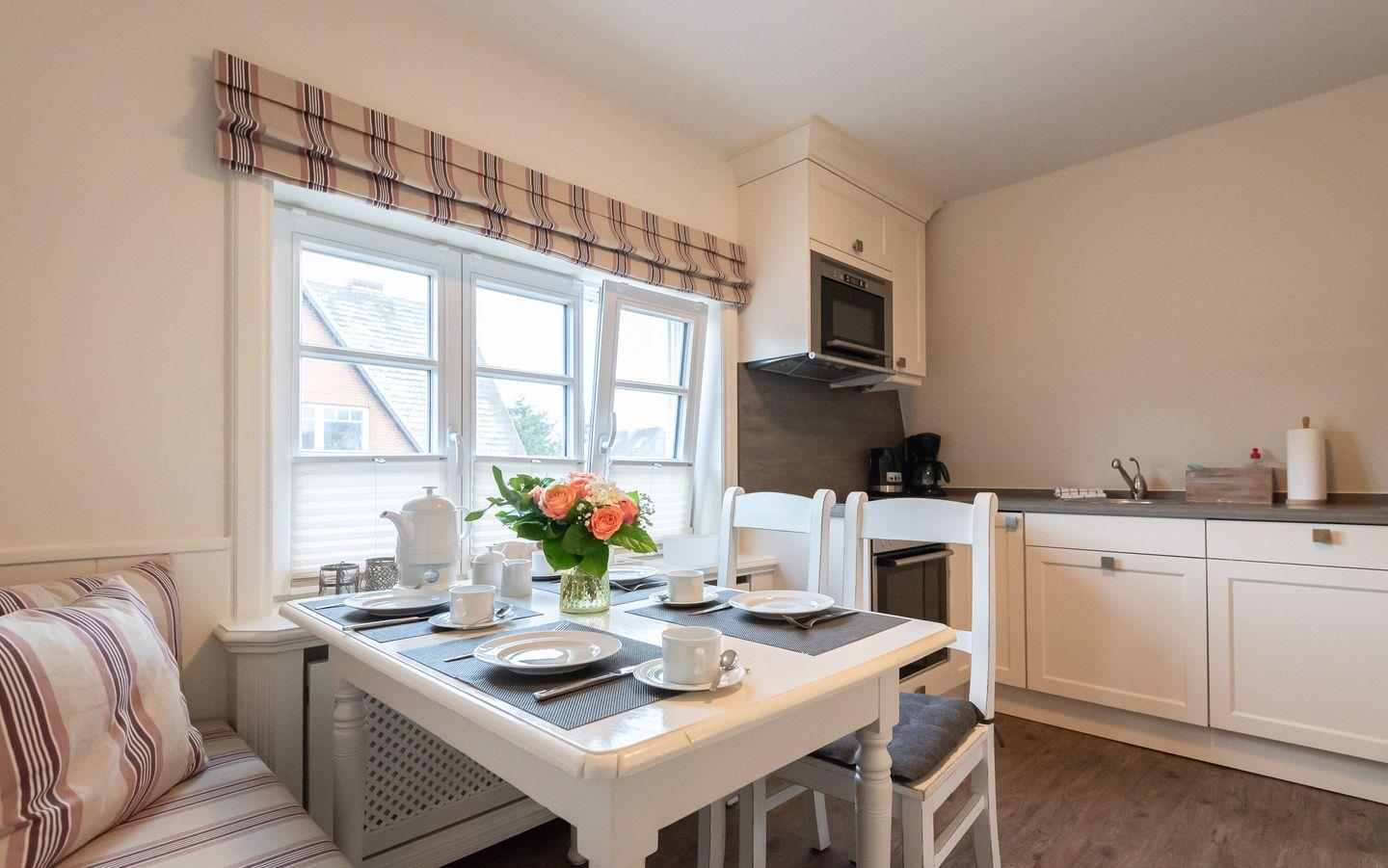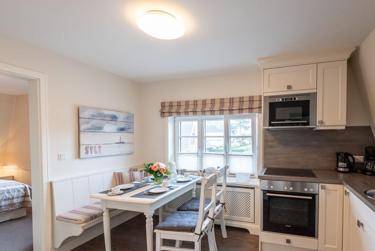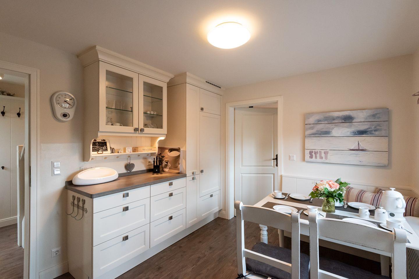 Küche: Gut ausgestattete Küche im Landhausstil mit einem weiteren Essbereich für 4 Personen.