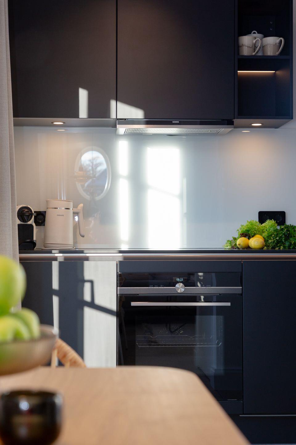 Schon beim Ankommen spüren Sie die harmonische, geschmackvolle Atmosphäre Ihres Hauses. Die elegante schwarze Küche besticht nicht nur durch ihr hochwertiges Design, sondern bietet auch exzellente Kochmöglichkeiten. Voll ausgestattet, lädt sie dazu ein, sich kulinarisch zu verwöhnen. Ein praktischer Abstellraum sorgt für ausreichend Stauraum.
