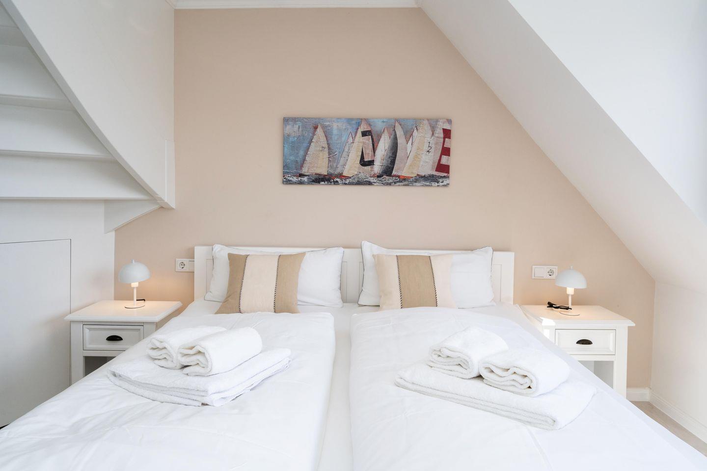 Dieses modern eingerichtete, sanierte 5-Sterne Reihenendhaus mit 120 m² Wohnfläche bietet Ihnen ein gemütliches Wohn- und Esszimmer mit Flatscreen Fernseher. Die komplett ausgestattete Küche befindet sich im Erdgeschoss. Im Erdgeschoss befindet sich außerdem ein Gäste-WC. Im Obergeschoss erwarten Sie drei große Doppelschlafzimmer und zwei Duschbäder. Nutzen Sie gerne den großen Garten mit zwei Terrassen und einem Strandkorb (in der Saison) in absolut ruhiger Lage. Das Ferienhaus verfügt über WLAN, zwei zugehörige PKW-Stellplätze, eine Waschmaschine sowie einen Wäschetrockner im eigenen Gartenhaus. Ein Haustier ist auf Anfrage erlaubt.