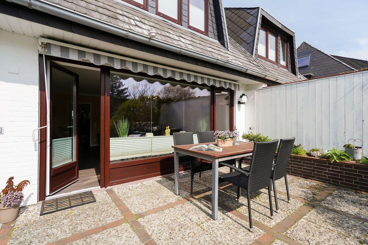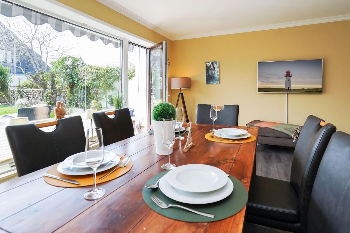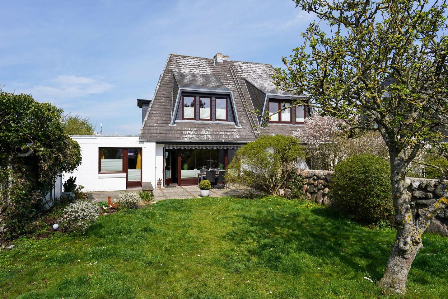 Familienfreundliche ca. 80 m² große Erdgeschosswohnung für bis zu 4 Personen am Ortsrand zu Westerland mit schönem, hundefreundlichem Garten und zugehörigem PKW- Stellplatz. Inklusive WLAN und Strandkorb (in der Saison).