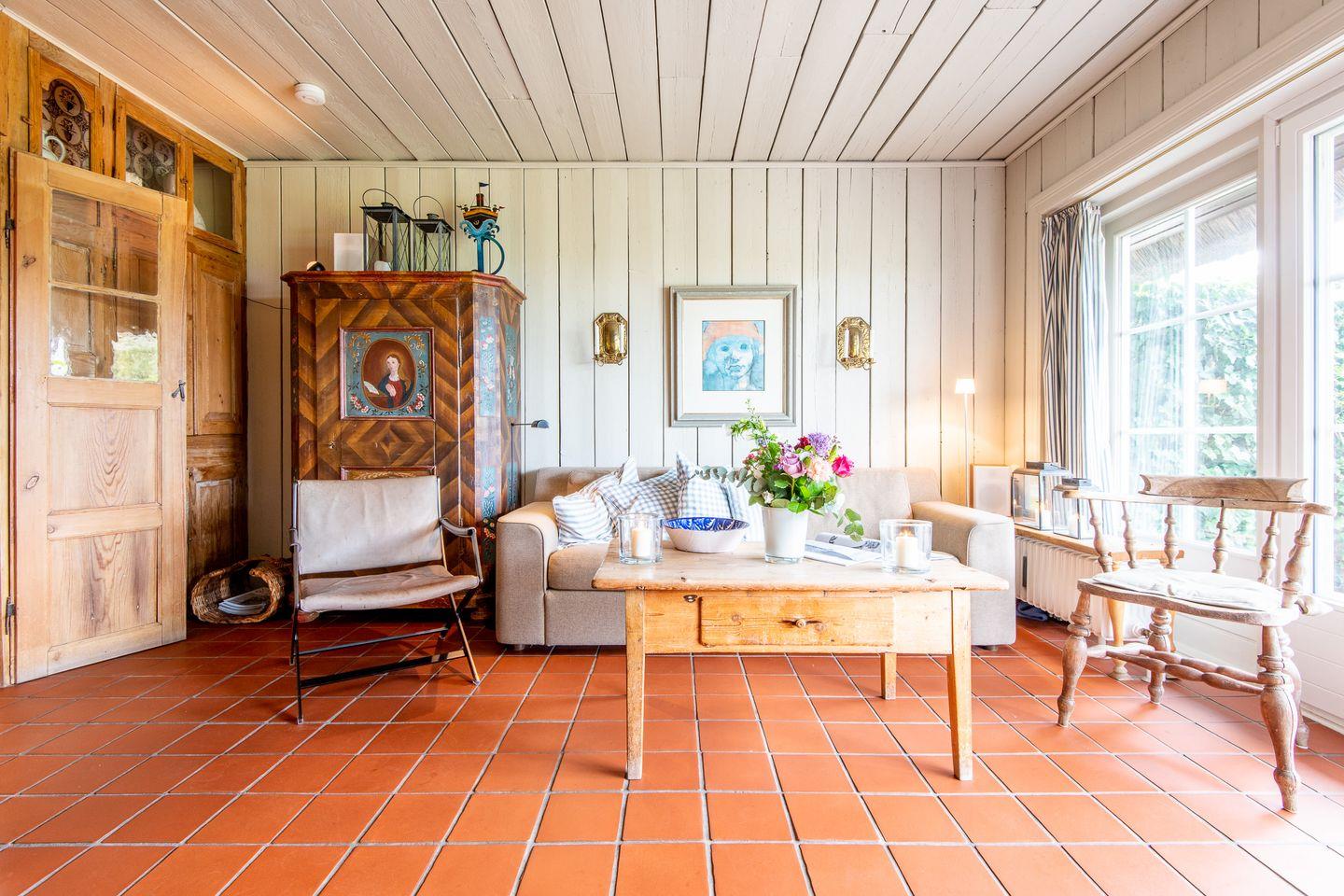 Im Erdgeschoss erwartet Sie ein einladendes Wohnzimmer mit gemütlicher Sofaecke und kleinem Essbereich. Von hier aus haben Sie direkten Zugang zur großzügigen Terrasse mit Ostausrichtung und freiem Blick auf das Wattenmeer – ein idealer Ort, um den Tag in ruhiger Umgebung zu beginnen oder ausklingen zu lassen.