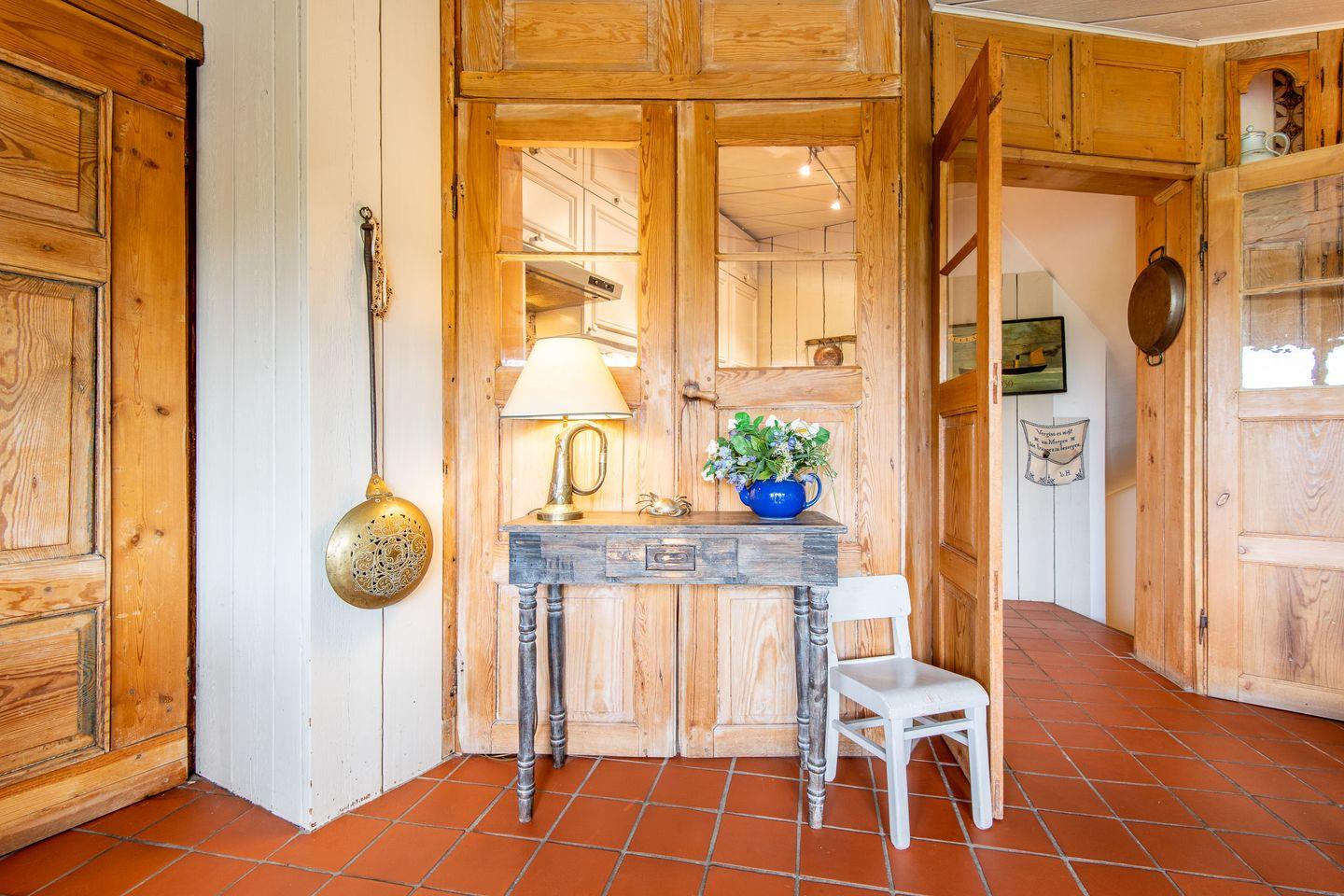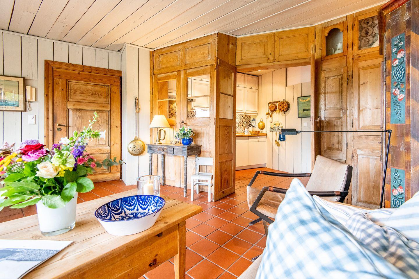 Die separate Küche, die durch ein altes Holzelement stilvoll vom Wohnbereich getrennt ist, bietet alles, was Sie zum Kochen benötigen. Mit einem Cerankochfeld, Geschirrspüler und Kaffeemaschine ausgestattet, finden Sie hier jeglichen Komfort, um sich kulinarisch zu entfalten und Ihre Lieblingsgerichte zuzubereiten.