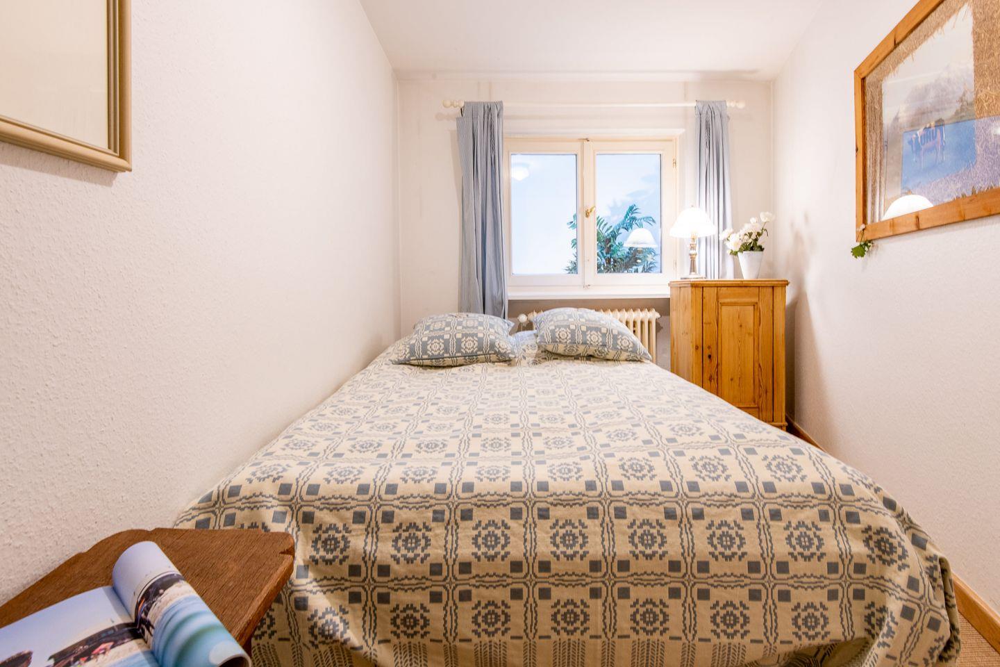 Das Hauptschlafzimmer ist mit einem komfortablen Doppelbett (170 cm breit), einem geräumigen Kleiderschrank, einer praktischen Eckkommode und einem Fernseher ausgestattet. Für eine angenehme Nachtruhe lässt sich der Raum verdunkeln. Das zweite Schlafzimmer ist ebenfalls mit einem Doppelbett (170 cm breit) eingerichtet und bietet eine Schlafmöglichkeit für ein Kind oder einen weiteren Erwachsenen.