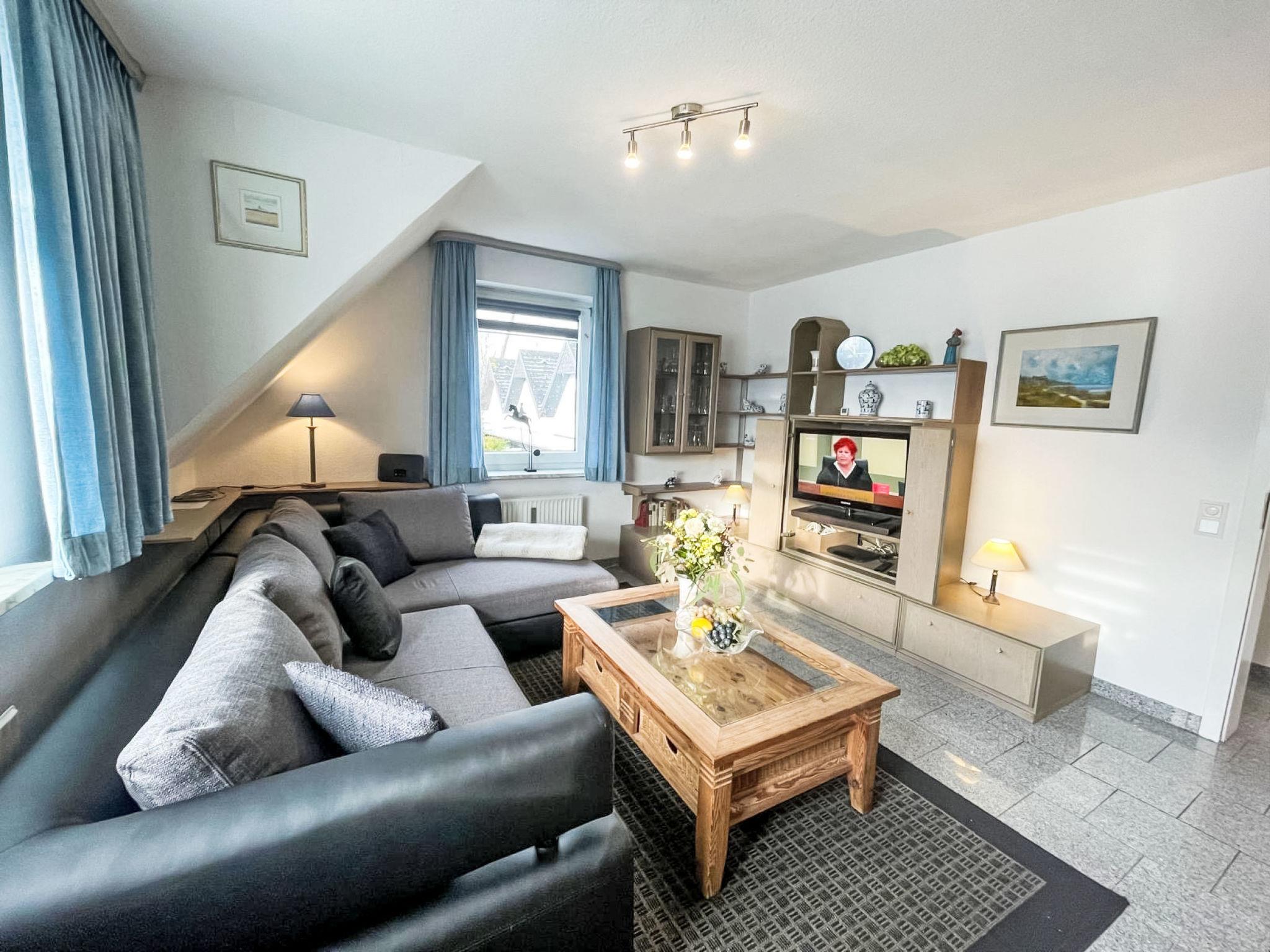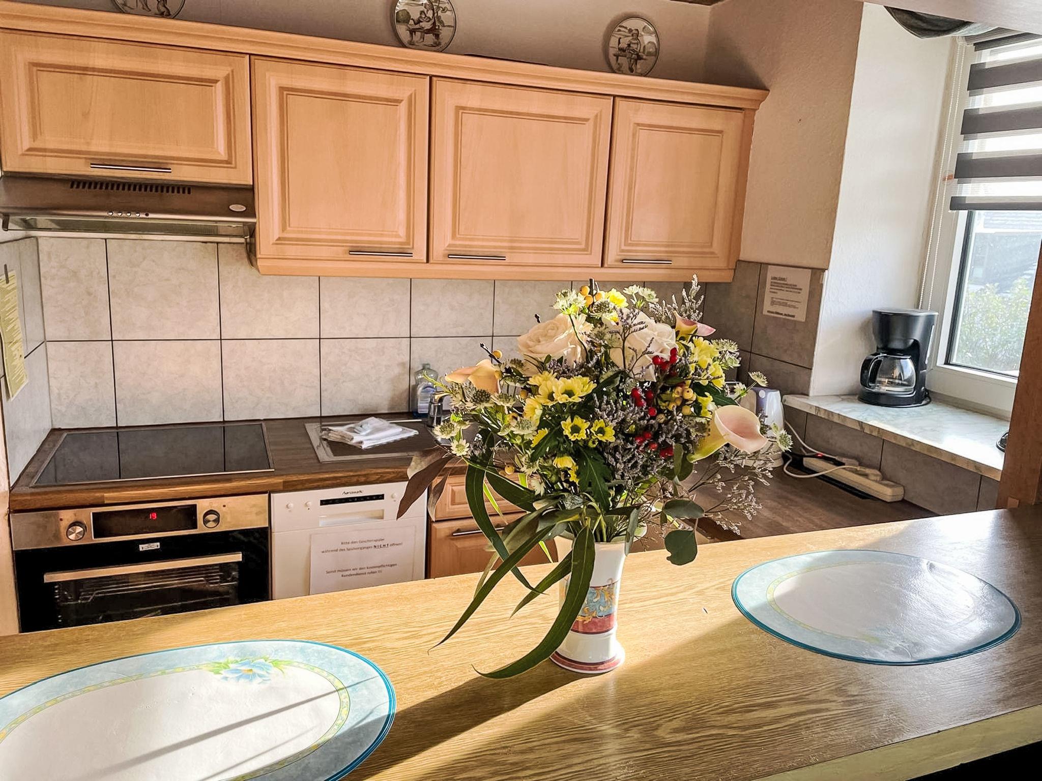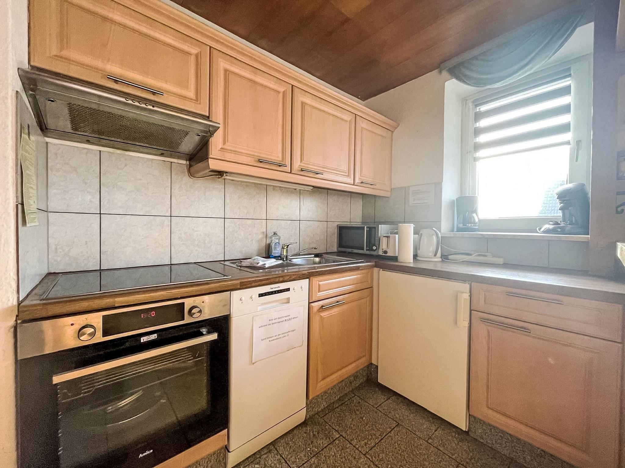 "Fewo 4 in ruhigem Haus", 3-room apartment 45 m2 on 2 levels, on the upper floor. Comfortable furnishings: living/dining room with satellite TV (flat screen), radio, CD-player and DVD. 1 room with 1 double bed and satellite TV (flat screen). Kitchenette (oven, dishwasher, 4 ceramic glass hob hotplates, toaster, kettle, microwave, electric coffee machine) with bar, dining table. Shower/WC. 2nd upper floor: (steep stair), 1 room with sloping ceilings, ceiling height 30 - 180 cm with 2 beds and satellite TV (flat screen). Heating. Facilities: washing machine, dryer, baby cot, hair dryer. Internet (WiFi, free). Parking (1 car) at the house. Please note: non-smokers only. Maximum 1 pet/ dog allowed. Smoke alarm.