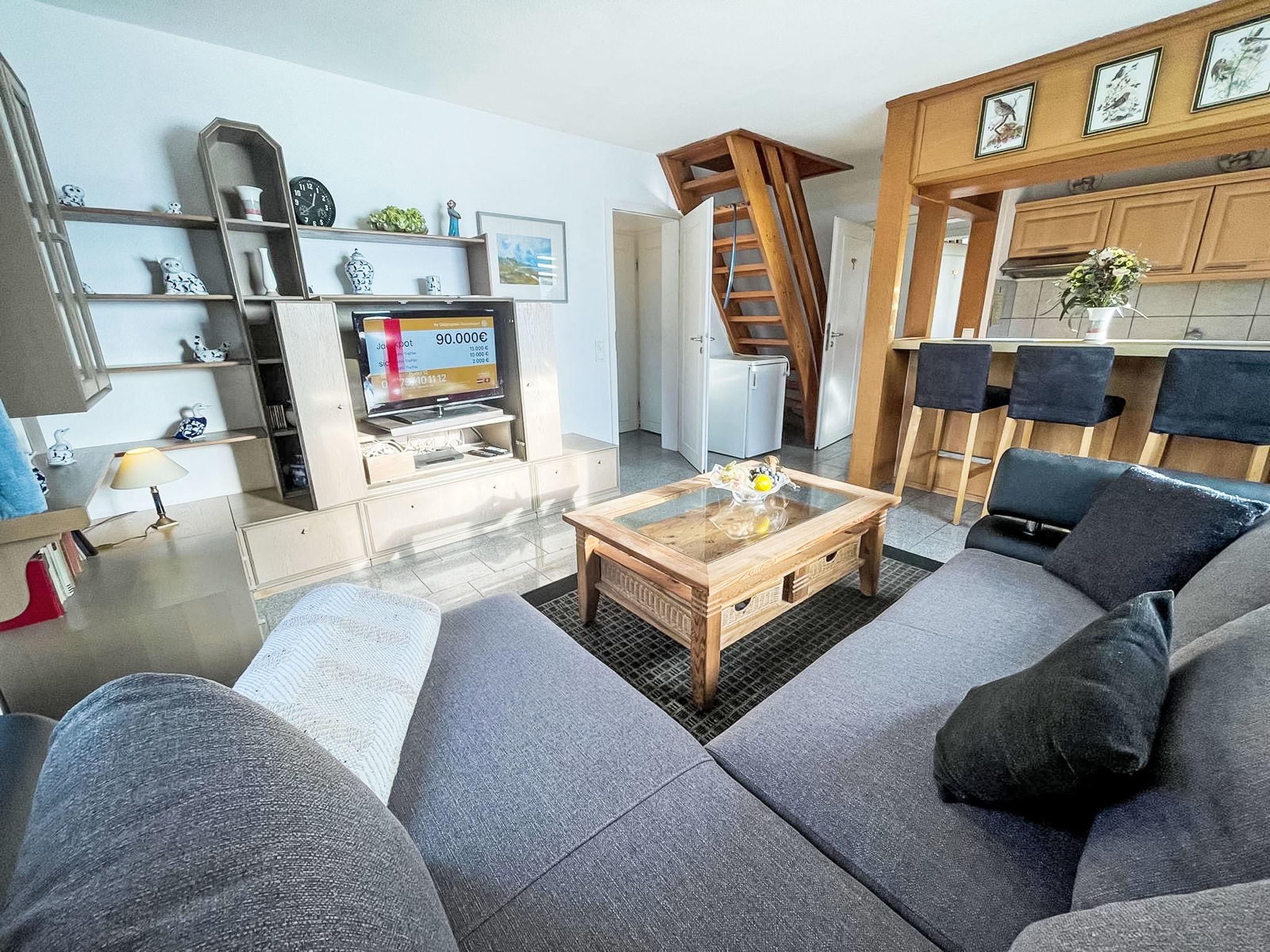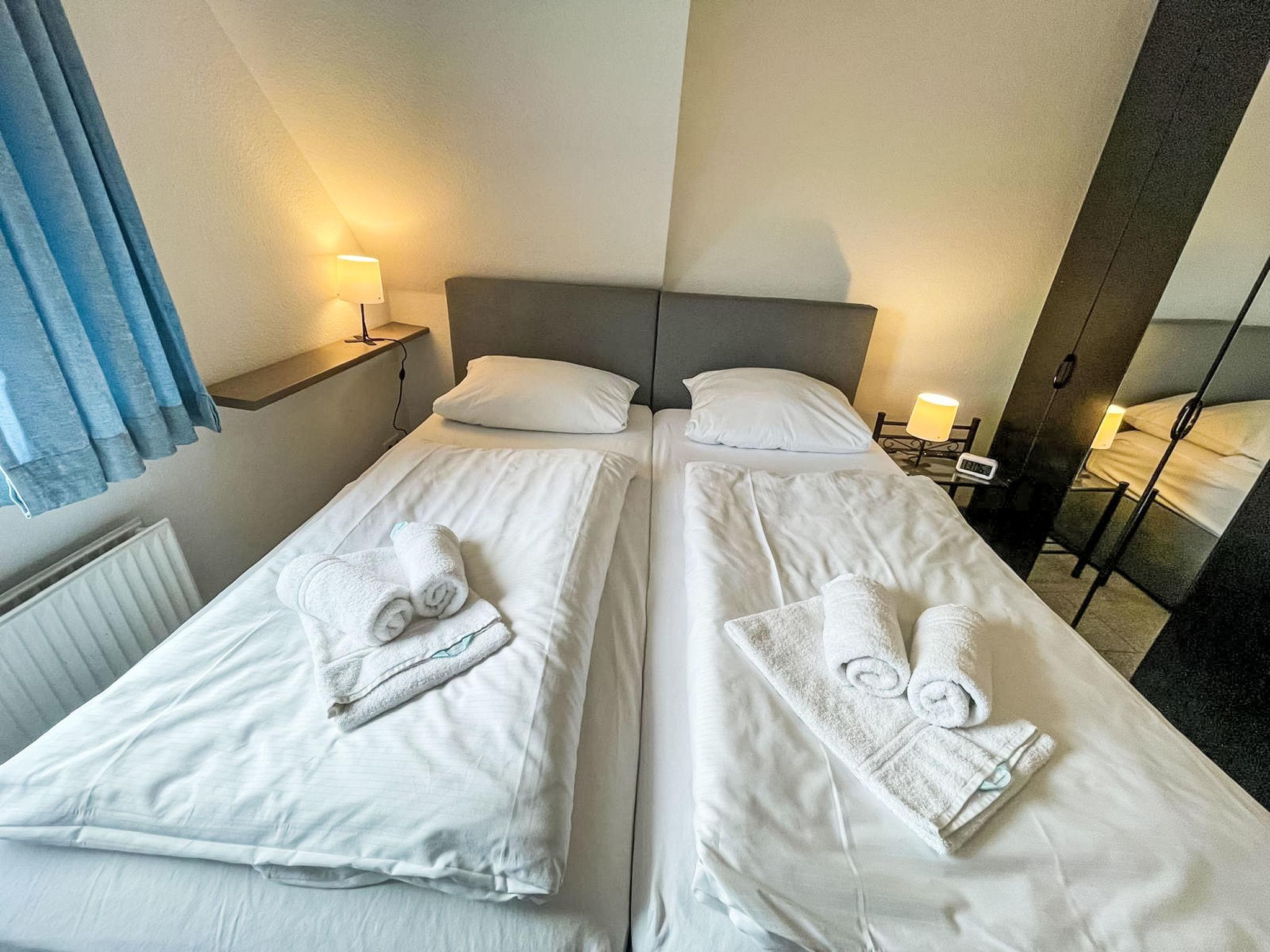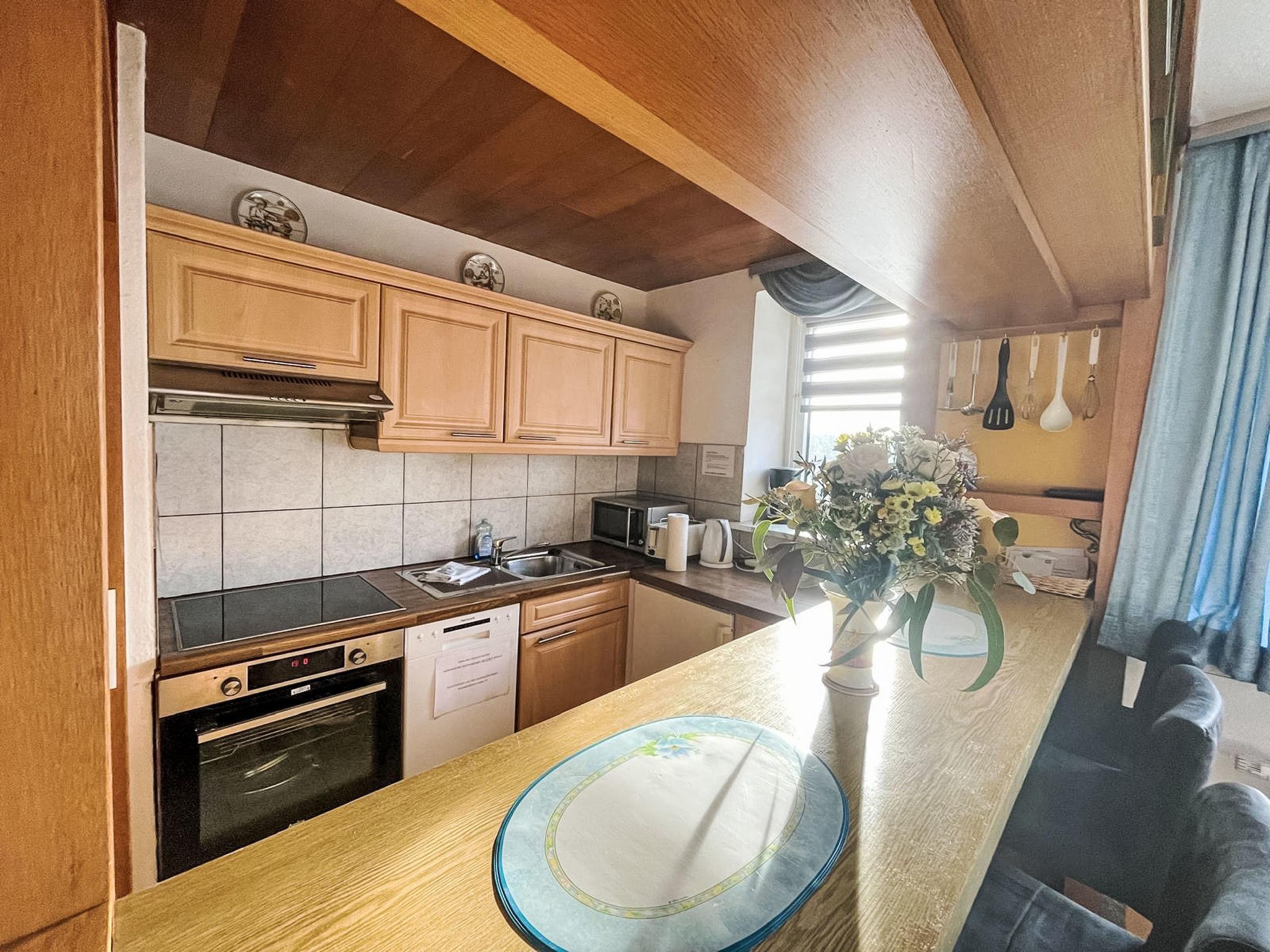 "Fewo 4 in ruhigem Haus", 3-room apartment 45 m2 on 2 levels, on the upper floor. Comfortable furnishings: living/dining room with satellite TV (flat screen), radio, CD-player and DVD. 1 room with 1 double bed and satellite TV (flat screen). Kitchenette (oven, dishwasher, 4 ceramic glass hob hotplates, toaster, kettle, microwave, electric coffee machine) with bar, dining table. Shower/WC. 2nd upper floor: (steep stair), 1 room with sloping ceilings, ceiling height 30 - 180 cm with 2 beds and satellite TV (flat screen). Heating. Facilities: washing machine, dryer, baby cot, hair dryer. Internet (WiFi, free). Parking (1 car) at the house. Please note: non-smokers only. Maximum 1 pet/ dog allowed. Smoke alarm.