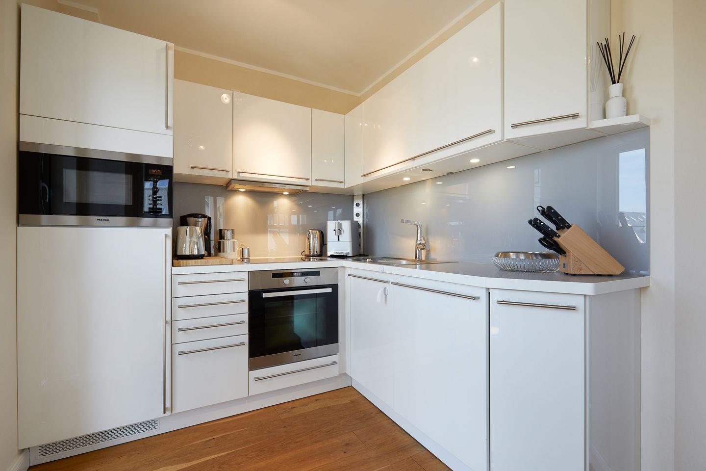 Ihre in den Raum integrierte, aber optisch getrennte Luxusküche mit Induktionsherd bietet Ihnen sämtliche Annehmlichkeiten, die Sie auch zum ambitionierteren Kochen schätzen werden. Bistrotisch mit zwei Hockern zum Genießen eines ersten Espressos am Morgen oder eines abendlichen Küchen-Weines. Auch vom Küchenfenster aus genießen Sie einen Blick auf die Dünen !