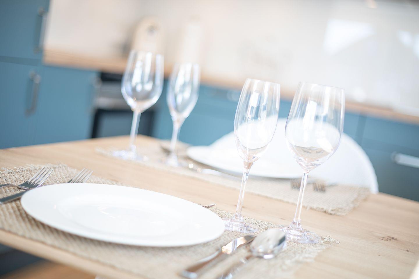 Wohnraum mit Flatscreen-TV, Sonoro-Anlage, W-Lan, Essbereich, offene Küche mit Microwelle-Backofen-Kombi, Induktionsherd, Geschirrspüler, Heißluftfritteuse, Filterkaffeemaschine, Nespresso-Kaffeemaschine. Balkon mit Balkonmöbeln (ca. April - Oktober) und Strandkorb. Ein Schlafraum mit Doppelbett und Flatscreen-TV. Ein Badezimmer mit Dusche und WC. Parkplatz am Hause, Nichtraucher, keine Haustiere erlaubt.