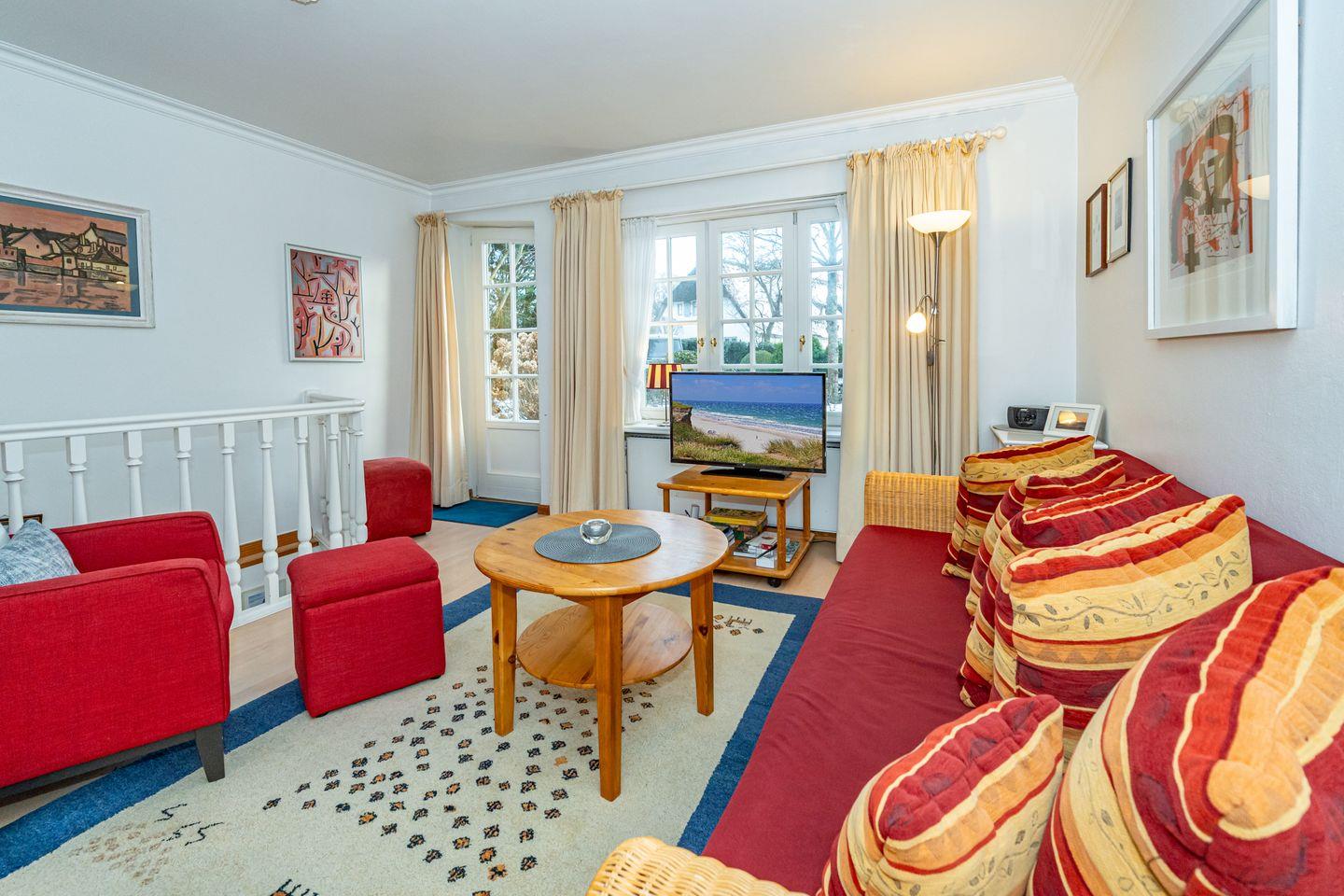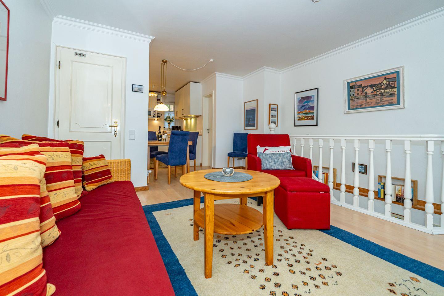 2-Zimmer-Ferienwohnung im Herzen von Keitum, umgeben von historischen Reetdachhäusern.
