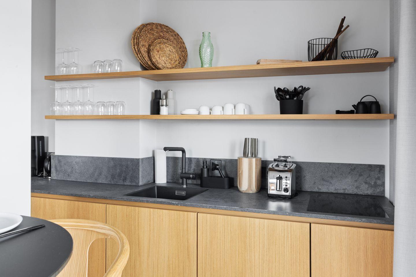 Die offene Küchenzeile fügt sich harmonisch in den Wohn- und Essbereich ein. Am gemütlichen Bistrotisch für zwei Personen beginnen Sie den Tag mit einem duftenden Kaffee oder lassen ihn bei einem liebevoll zubereiteten Dinner ausklingen. Hochwertige Geräte, darunter eine Bora-Dunstabzugsanlage, unterstützen Ihre kulinarischen Ideen und machen das Kochen zum Vergnügen.