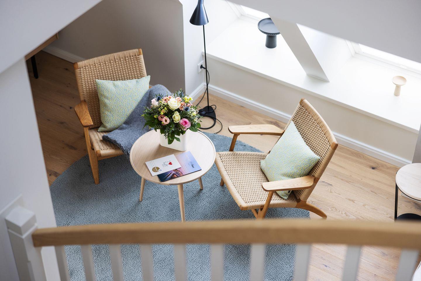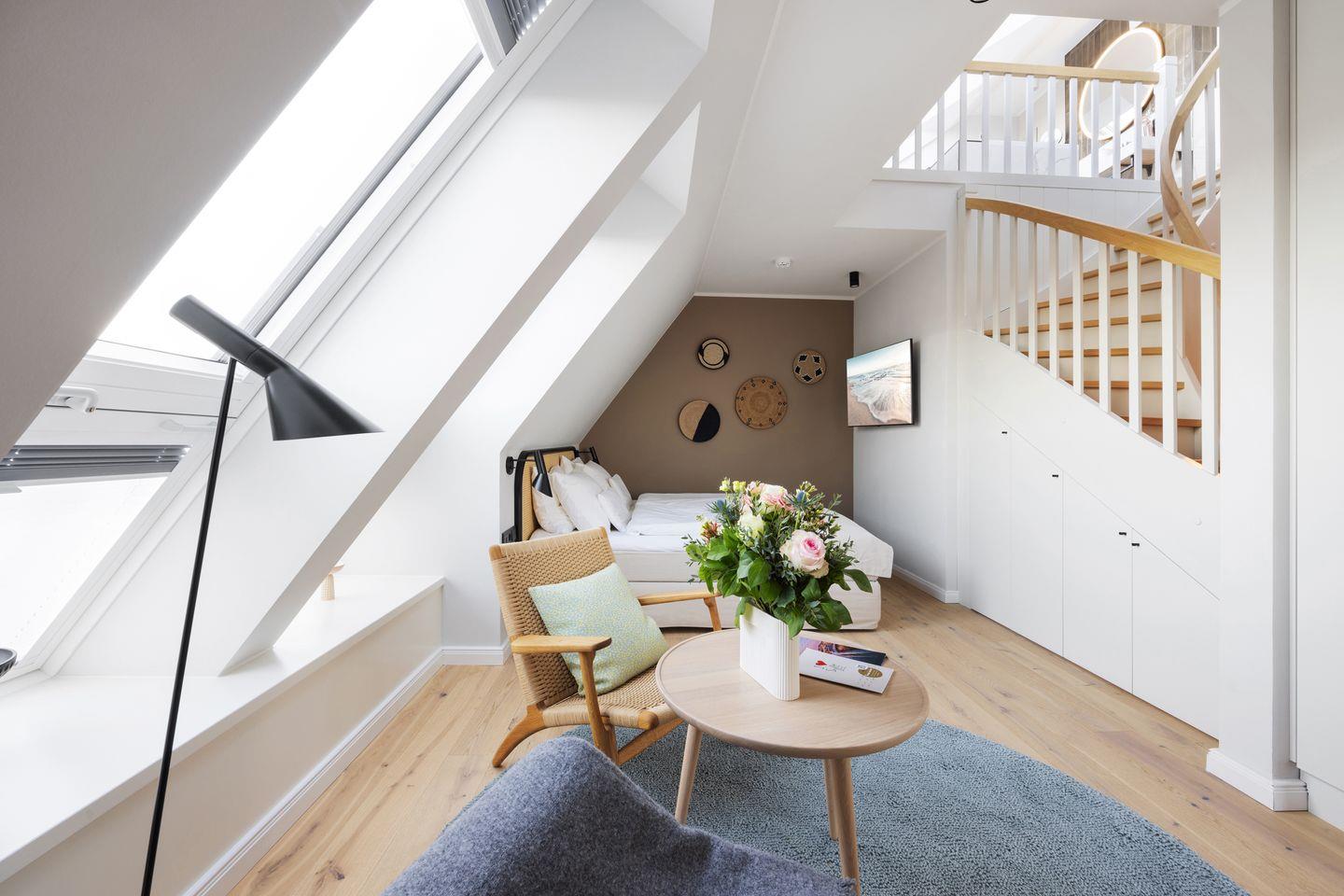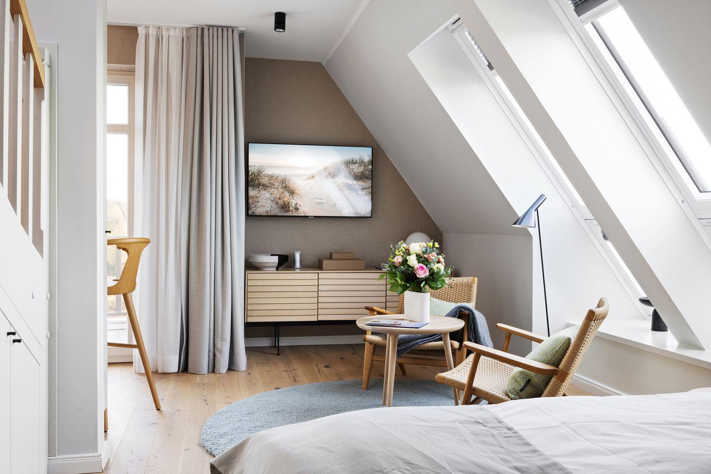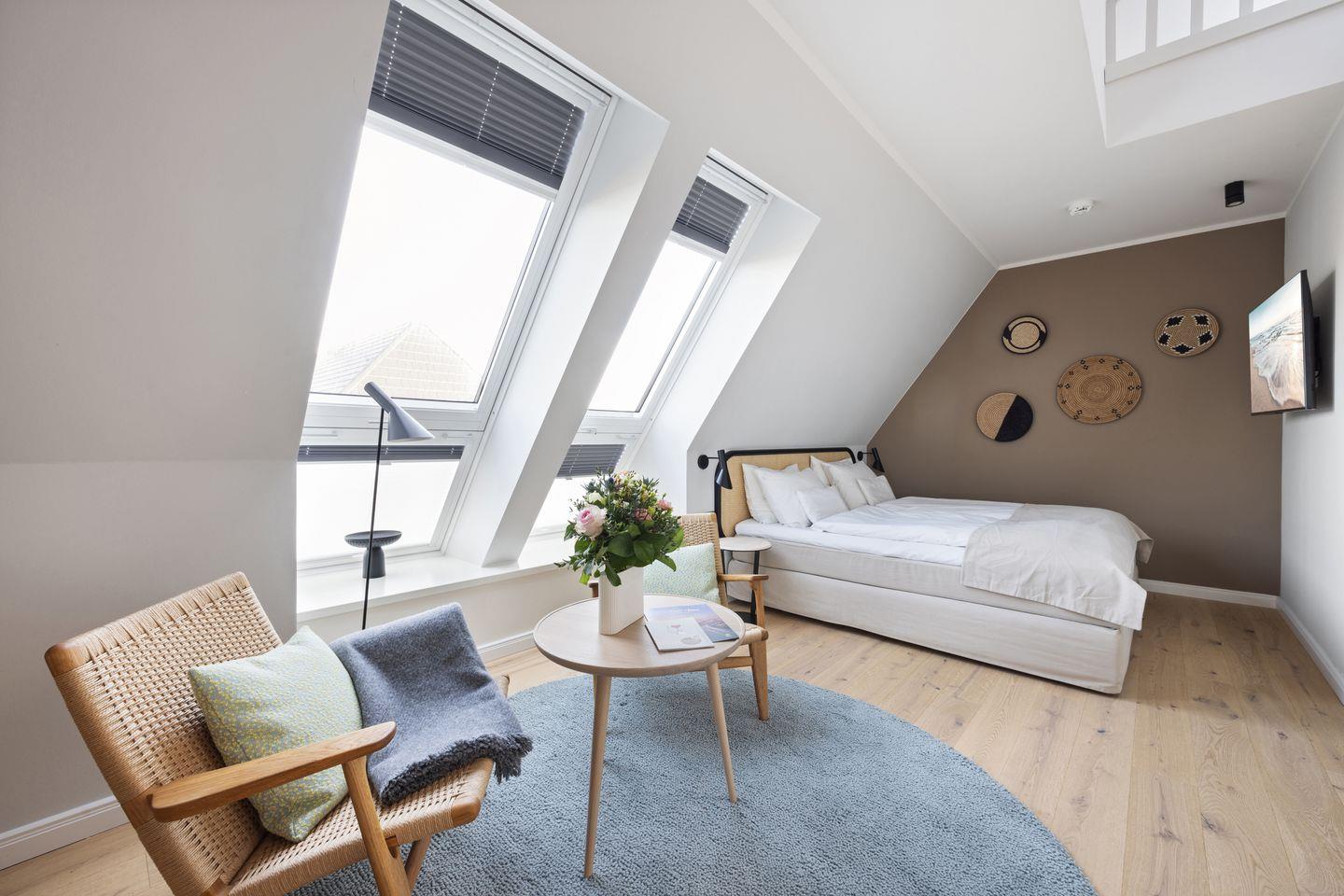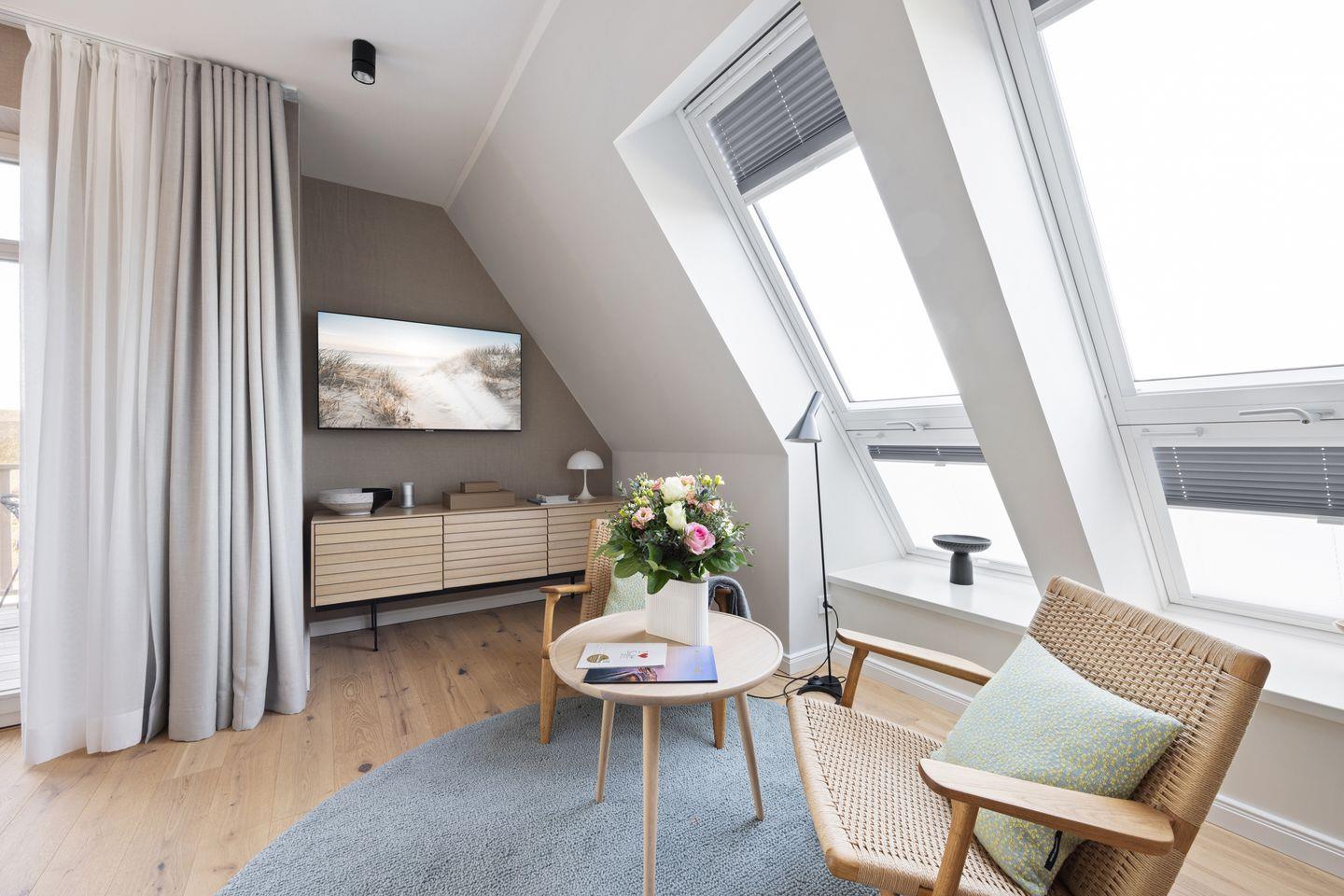 Die exklusive 2-Zimmer-Maisonettewohnung im Haus „Kliff“ erstreckt sich über zwei Ebenen und bietet auf ca. 55 m² Raum für bis zu zwei Personen. Licht durchflutet den offenen Wohnbereich durch großzügige Oberlichter und schafft eine helle, freundliche Atmosphäre. Sanfte Naturtöne, klare Linien und das stilvolle Scandi-Design lassen Sie sofort ankommen und durchatmen.