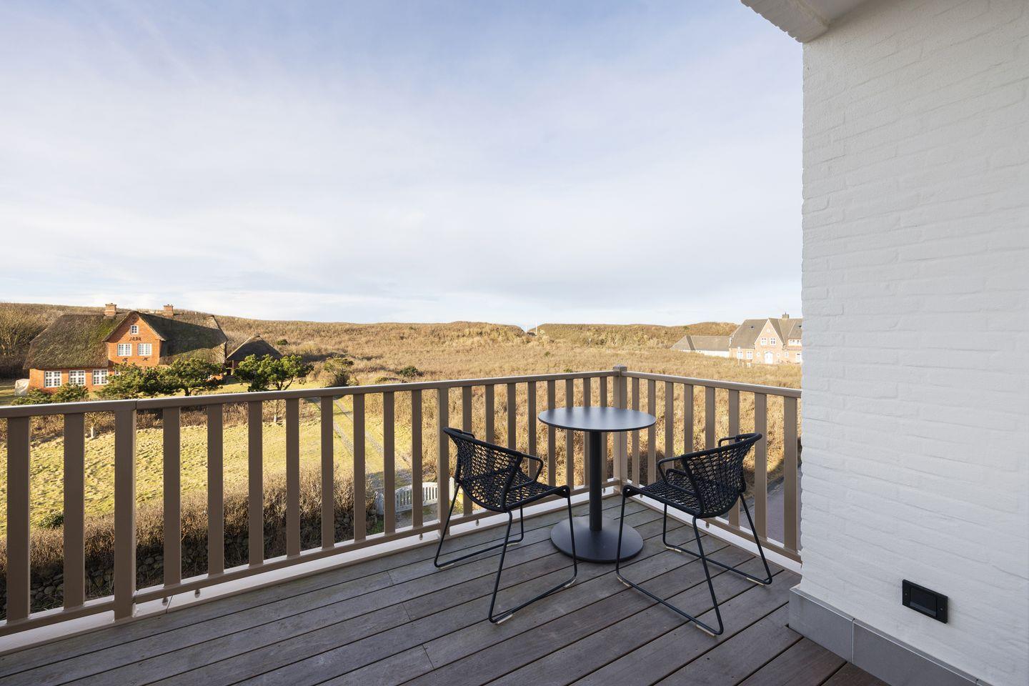 Von den beiden Nord-West-Balkonen schweift Ihr Blick über die Sylter Dünenlandschaft. Genießen Sie hier ein Glas Wein, während die Abendsonne den Himmel in warme Farben taucht und die Nordseeluft angenehm um Sie weht.