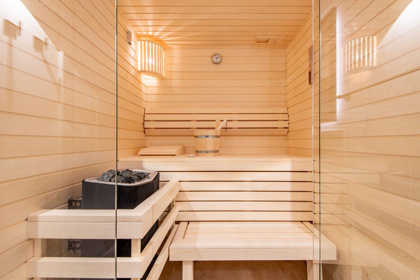 Die beiden modernen Badezimmer sowie ein zusätzliches Gäste-WC bieten höchsten Komfort. Das luxuriöse Wellnessbad mit privater Sauna und bodengleicher Dusche lädt zur puren Entspannung ein, während das zweite Badezimmer mit Doppelwaschtisch, Tageslicht, bodengleicher Dusche, separatem WC und Handtuchwärmer ebenfalls eine ideale Wohlfühl-Oase darstellt.