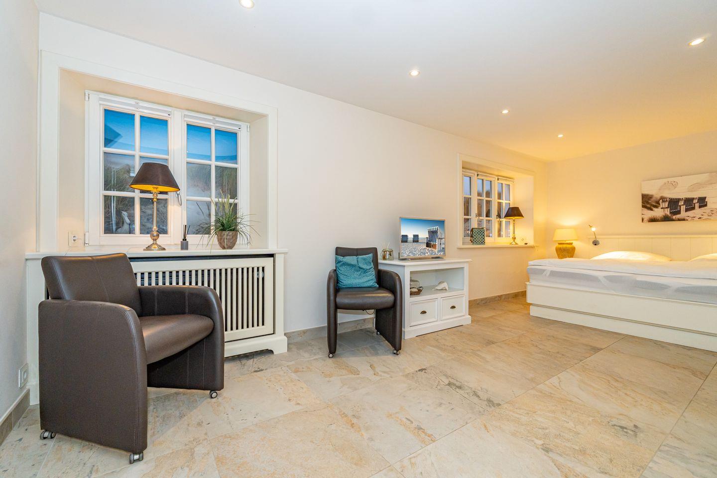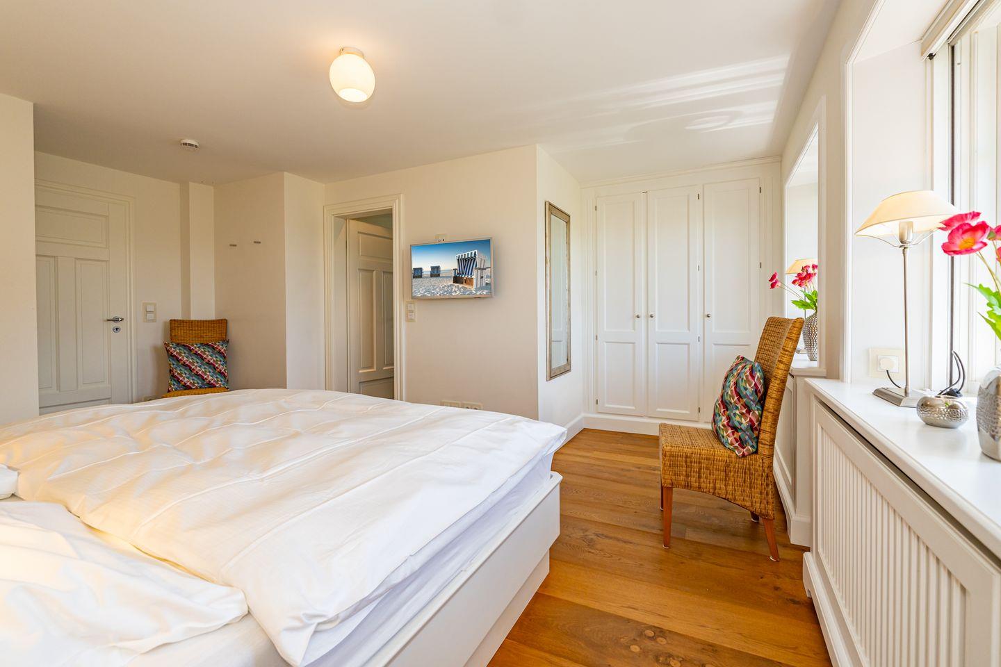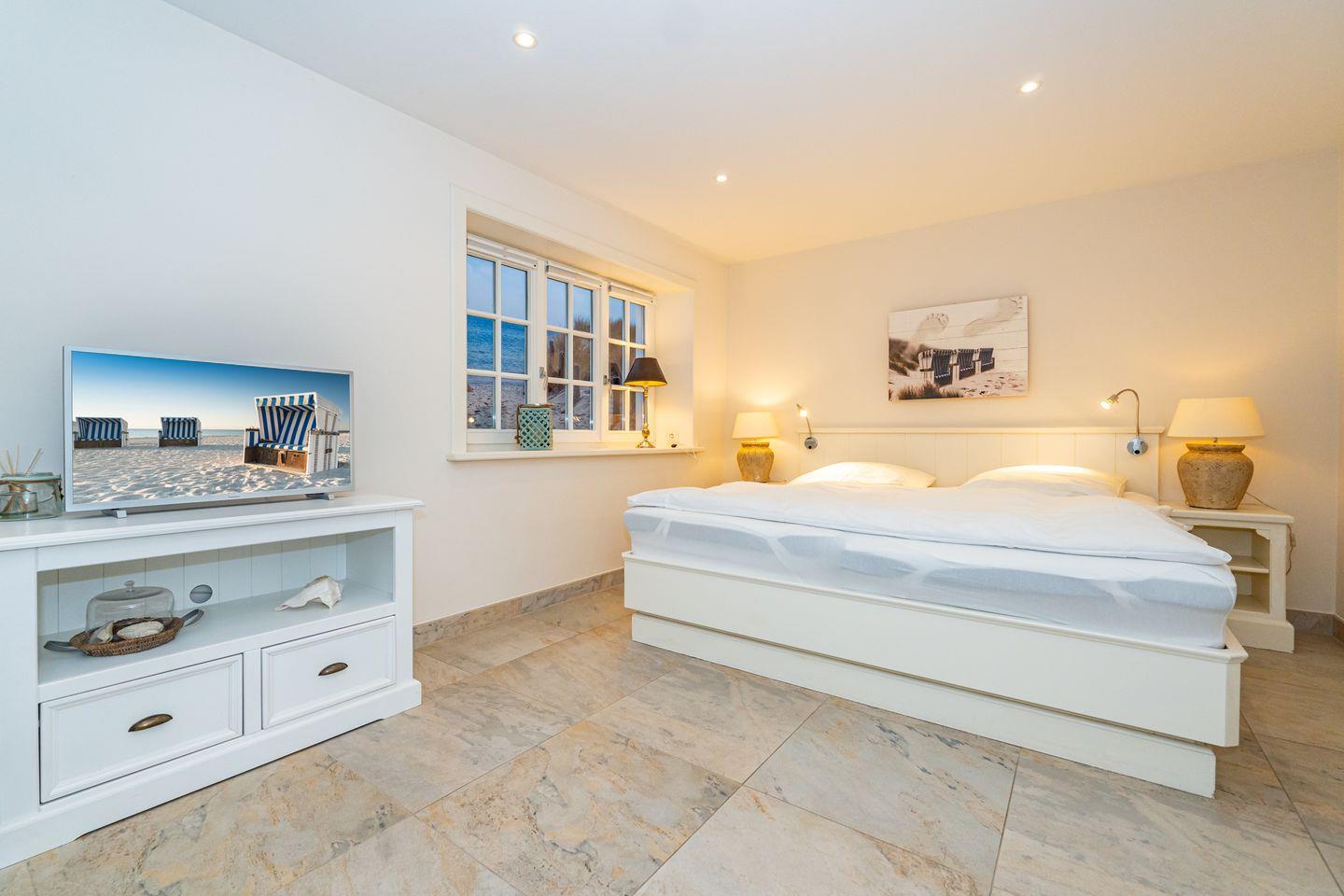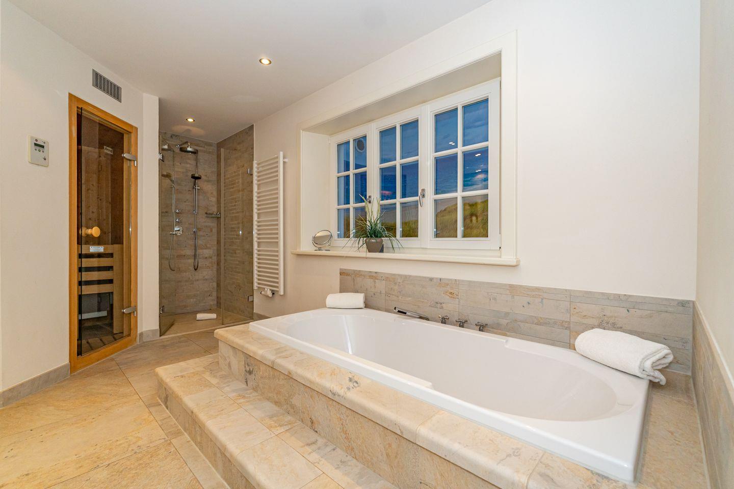 Das große Wohn/Esszimmer und die offene, vollausgestattete offener Küche laden dazu ein gemütliche Stunden in geselliger Runde zu verbringen. Der hochwertige Holzfußboden sowie der Kachelofen sorgen für eine ganz besondere Atmosphäre selbst bei stürmischem Wetter. Von hier aus gelangen Sie auf die Süd/West/Ost-Terrasse und den Garten. Ob Im eigenen Strandkorb oder auf den Sonnenliegen wir versprechen Ihnen hier Syltfeeling pur. Ebenfalls im Erdgeschoss befindet sich ein Gäste WC. Im Untergeschoss gibt es neben dem Doppelschlafzimmer ein weiters Highlight, das große Badezimmer mit finnischer Sauna, Badewanne und Regendusche. Ein weiters Doppelschlafzimmer sowie ein Einzelschlafzimmer befinden sich im ersten Obergeschoss. Hier stehen Ihnen zwei Badezimmer mit Dusche und WC zur Verfügung. Ein PKW Stellplatz befindet sich am Ferienhaus.