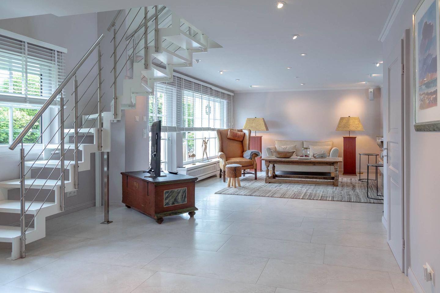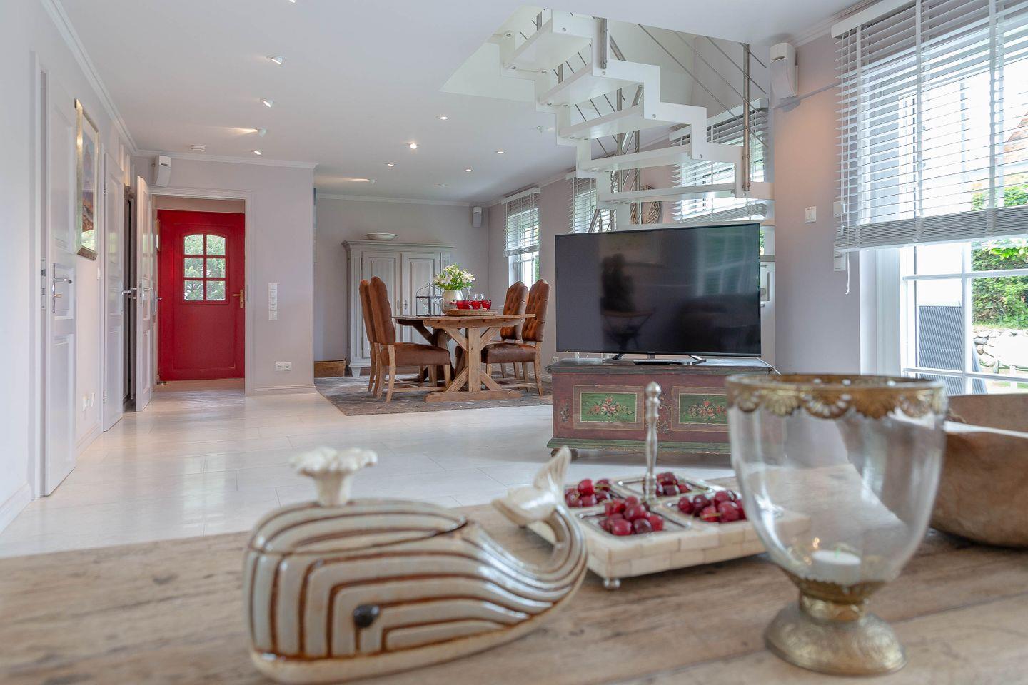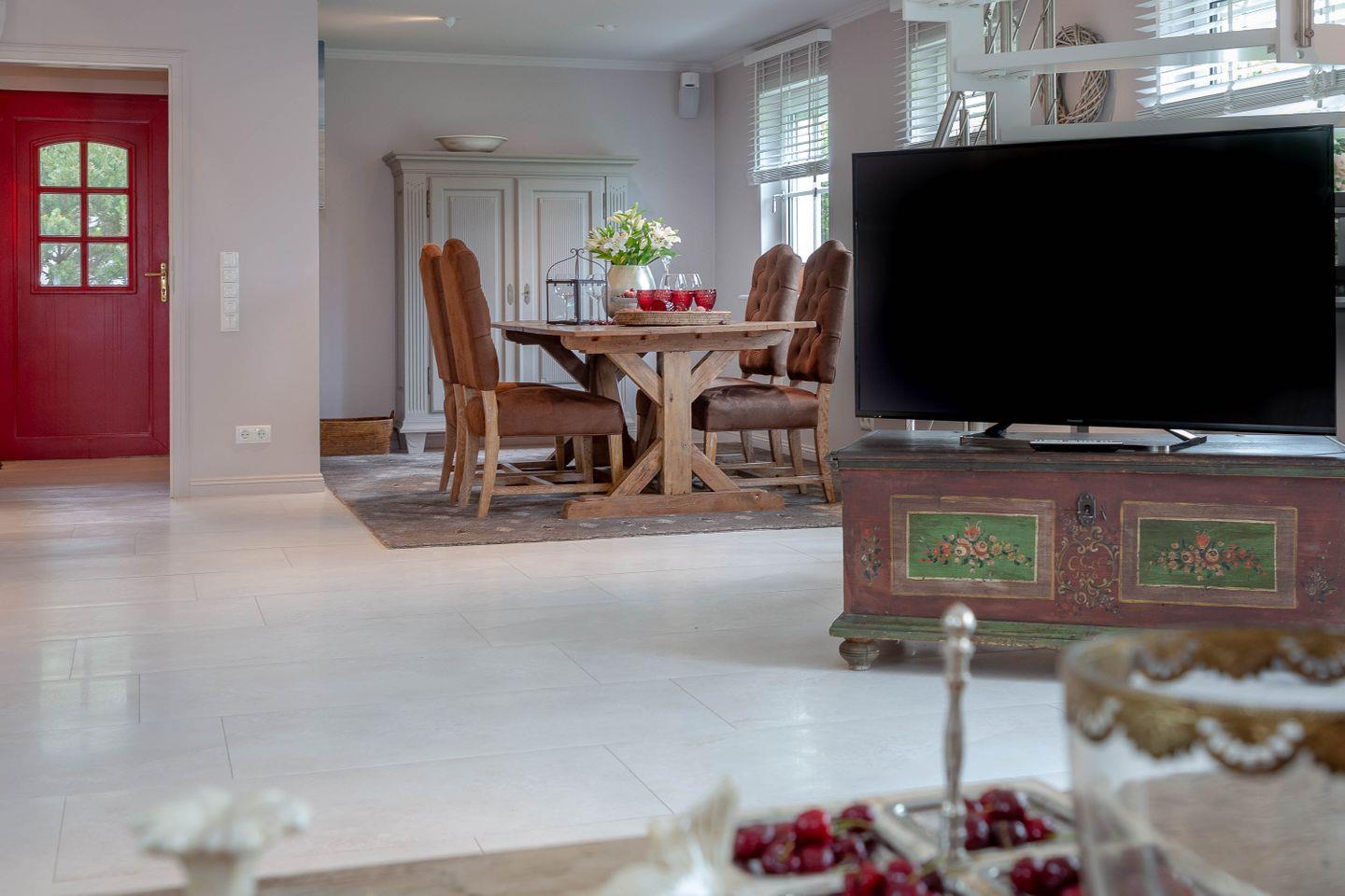 Das Ferienhaus liegt zentral im Dorfkern auf einem nach Süden ausgerichteten Grundstück. Das großzügige Ferienhaus empfängt seine Gäste mit einer warmen und wohnlichen Atmosphäre.