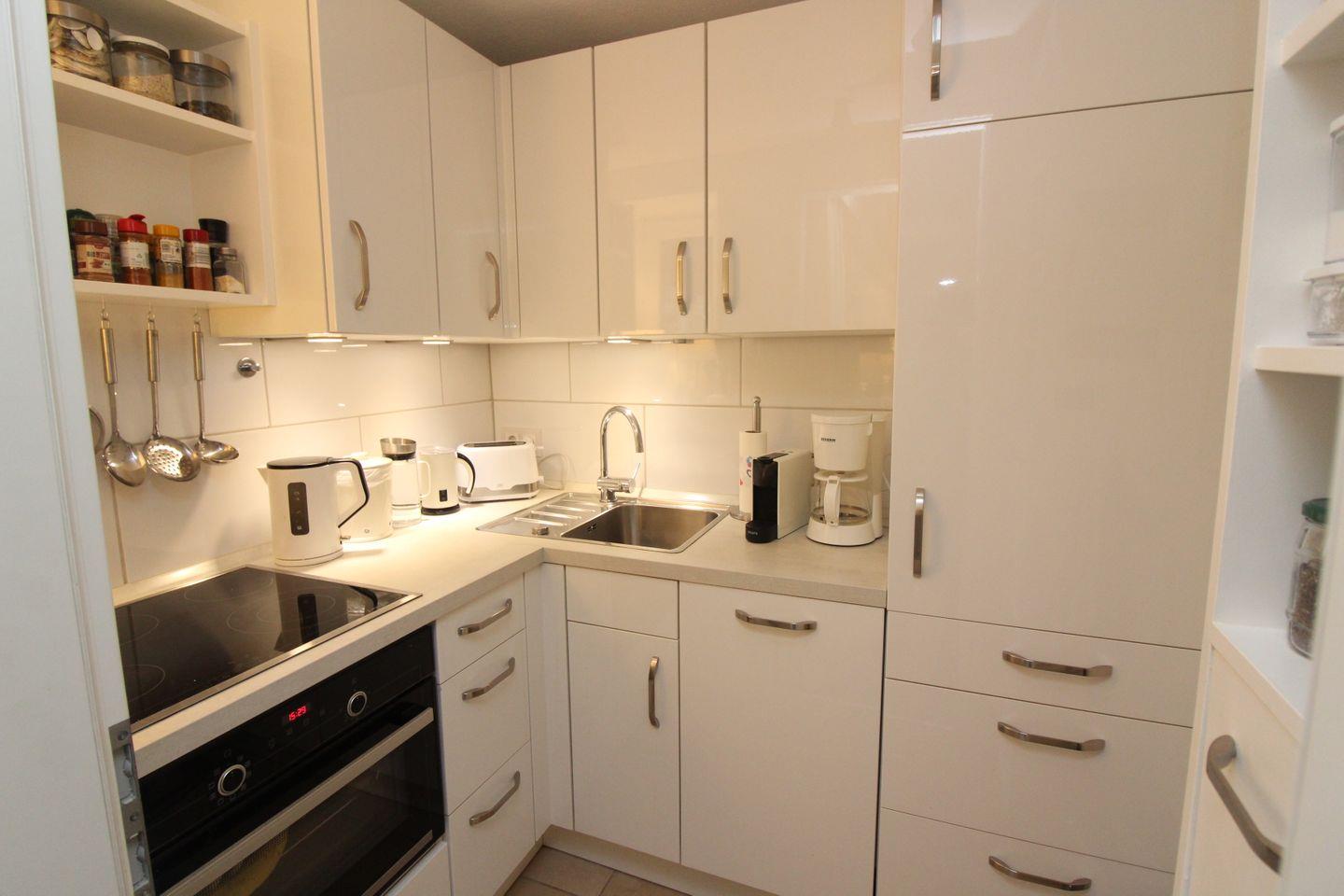 • Küche: Kleine Küche mit Fenster, Cerankochfeld mit 4 Platten Backofen, Geschirrspüler und Kühlschrank mit Gefrierfach